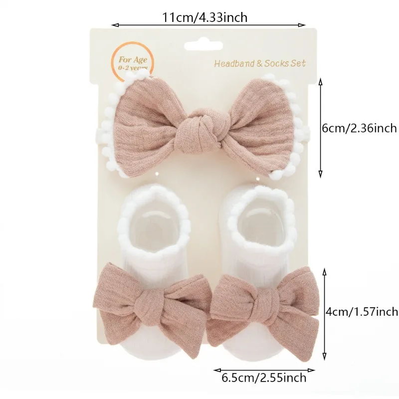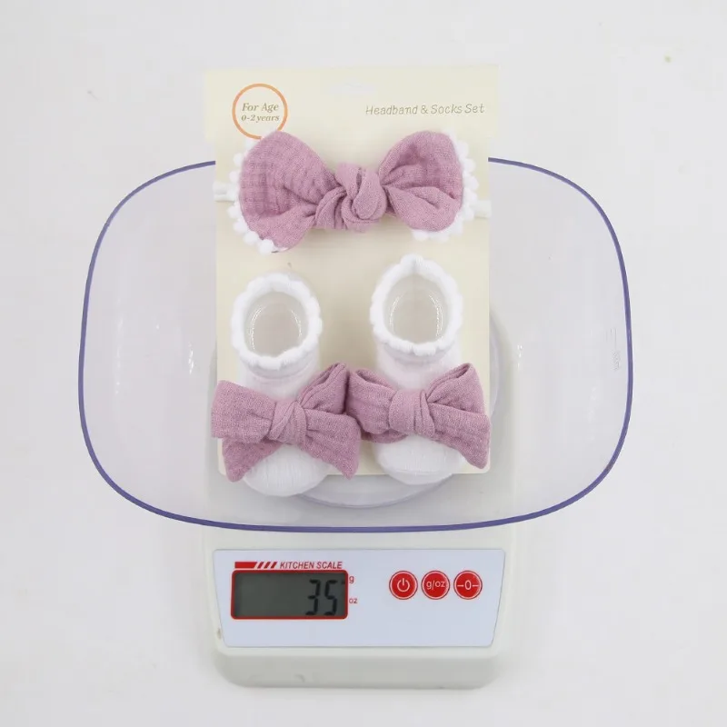 Comprar Conjunto de calcetines de agarre con diadema para bebé europeo, calcetines de barco antideslizantes con adorno de encaje y lazo arrugado atado a mano para niñas de 0 a 24 meses, fotografía para recién nacidos