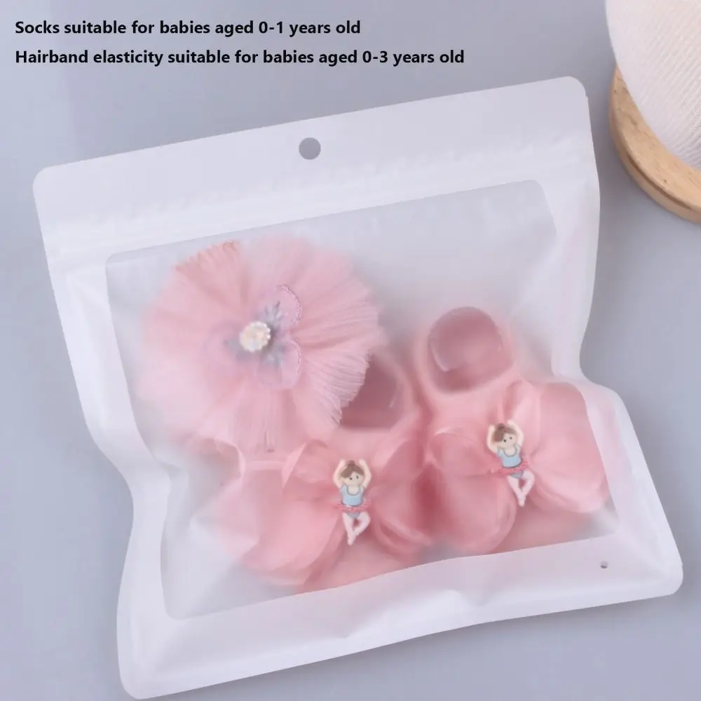Baby headband sock set, socks suitable for 0-1 year old babies, headband elasticity suitable for 0-3 year old babies.