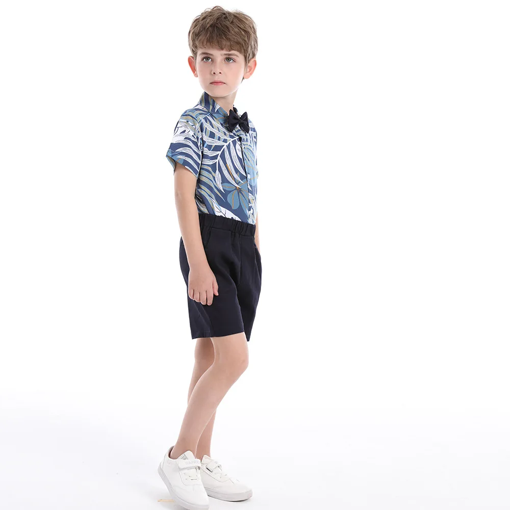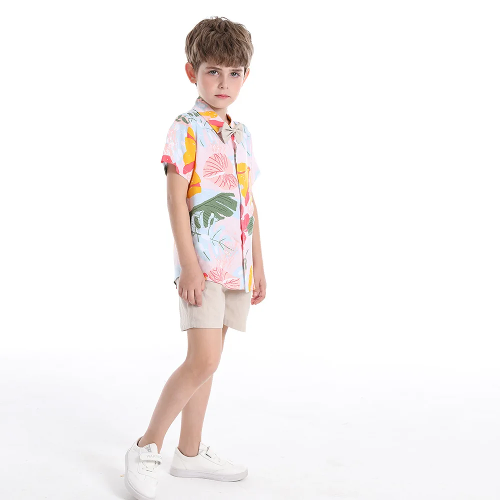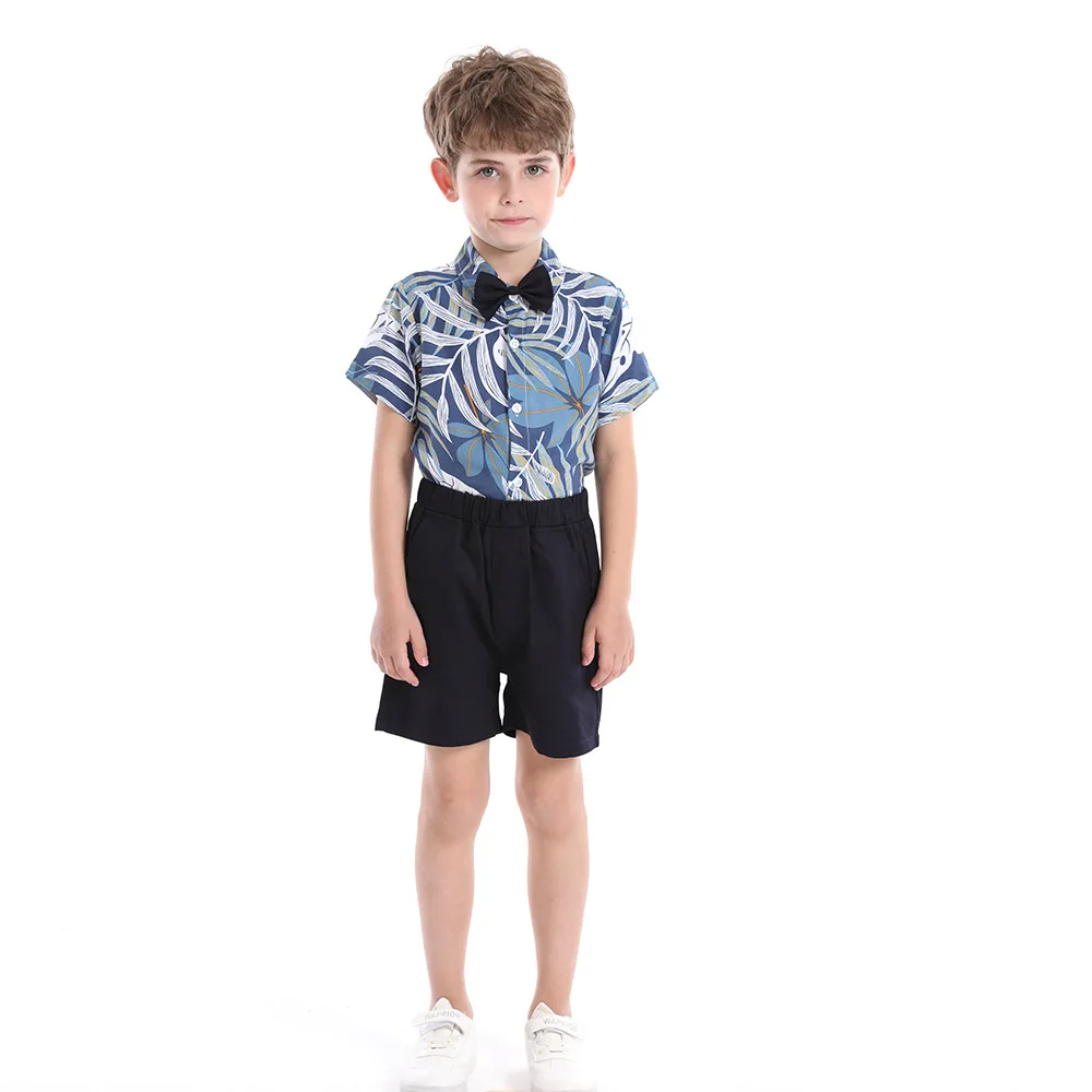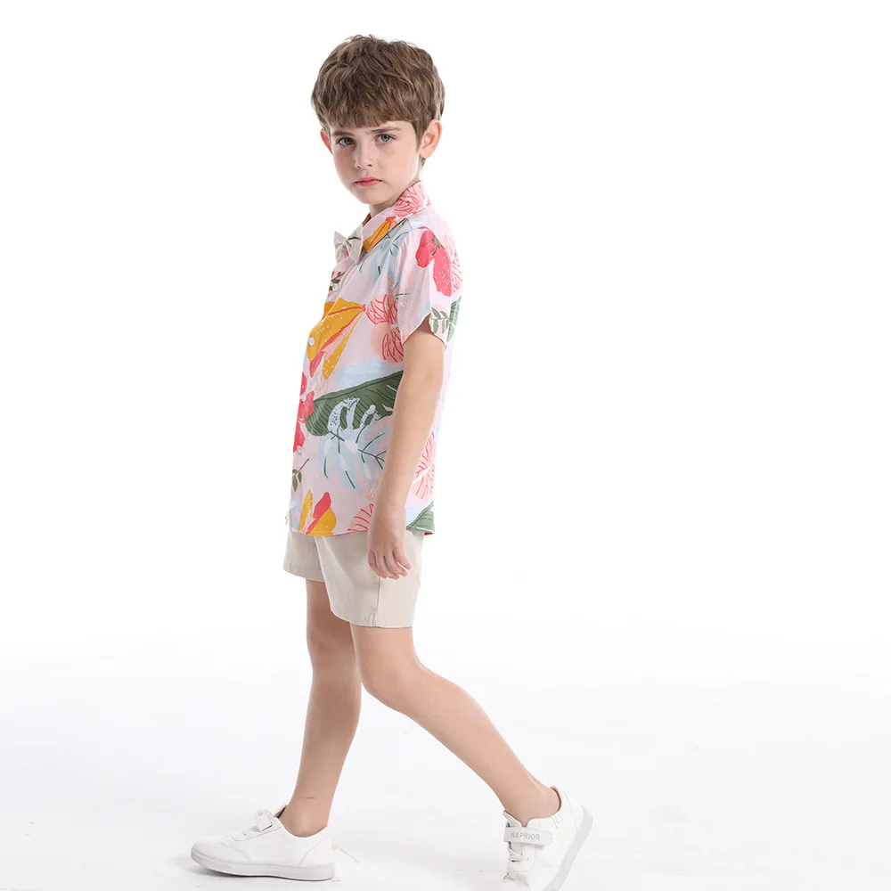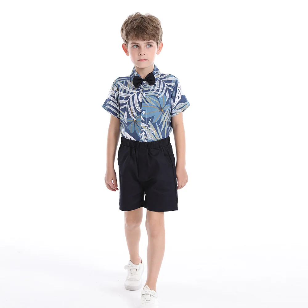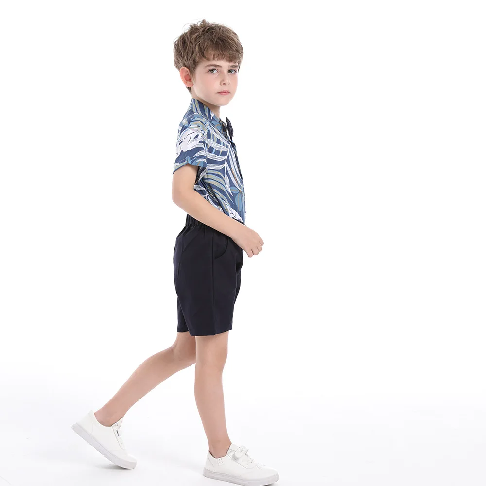 Conjunto de camisetas y pantalones cortos de flores para niño, ropa de verano de algodón para vacaciones, estilo de playa, camisas y pantalones cortos de flores de manga corta
