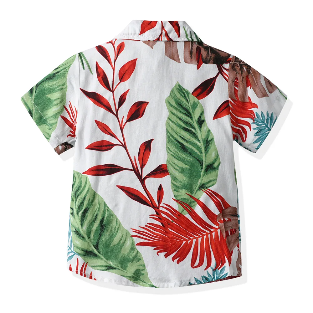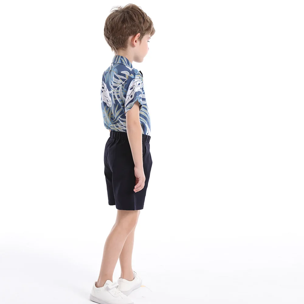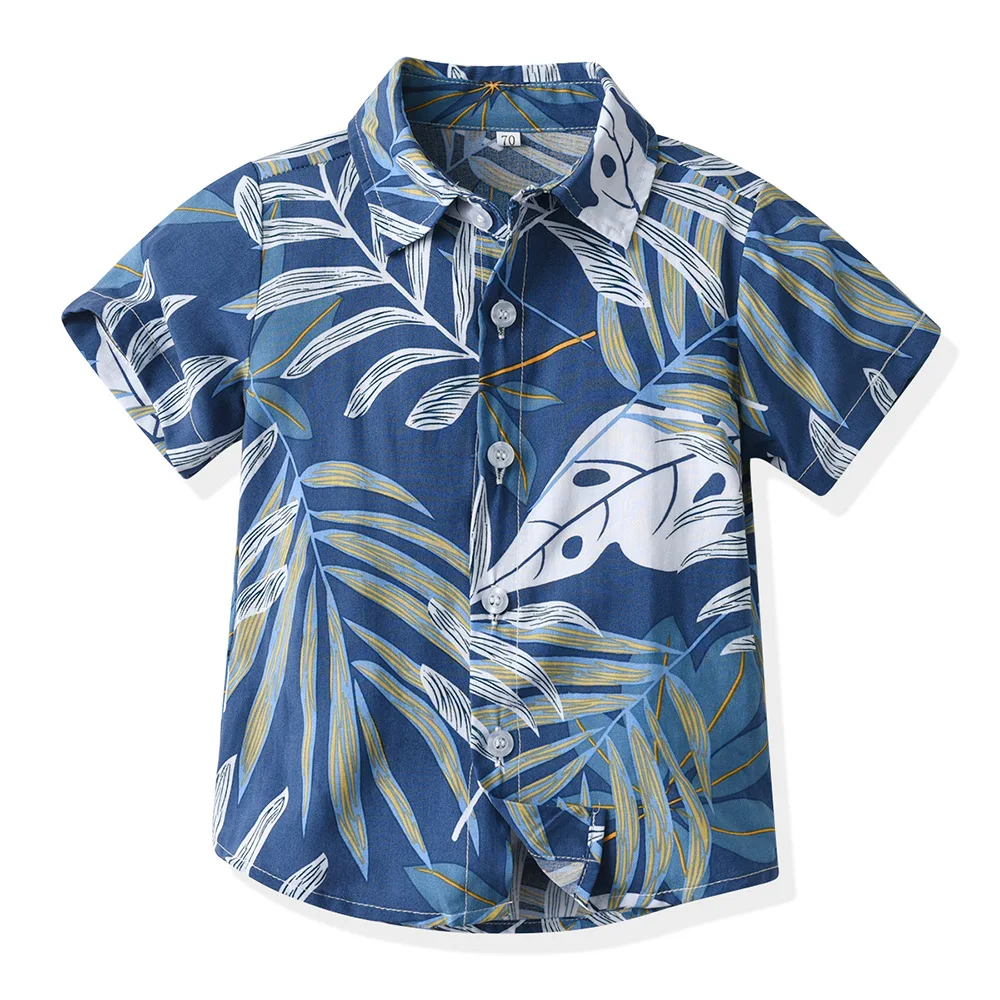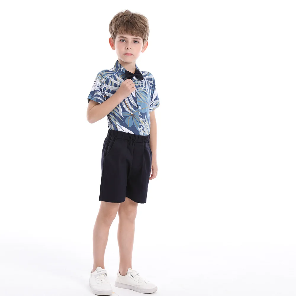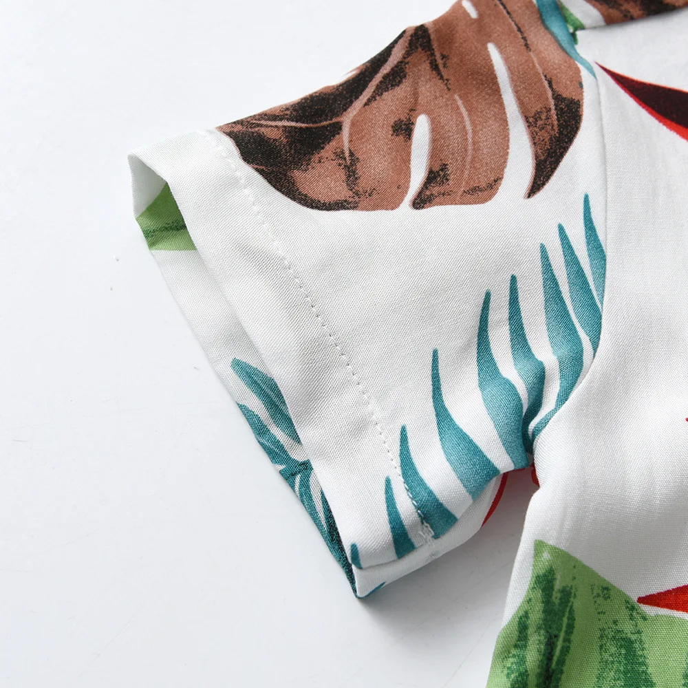 Conjunto de camisetas y pantalones cortos de flores para niño, ropa de verano de algodón para vacaciones, estilo de playa, camisas y pantalones cortos de flores de manga corta