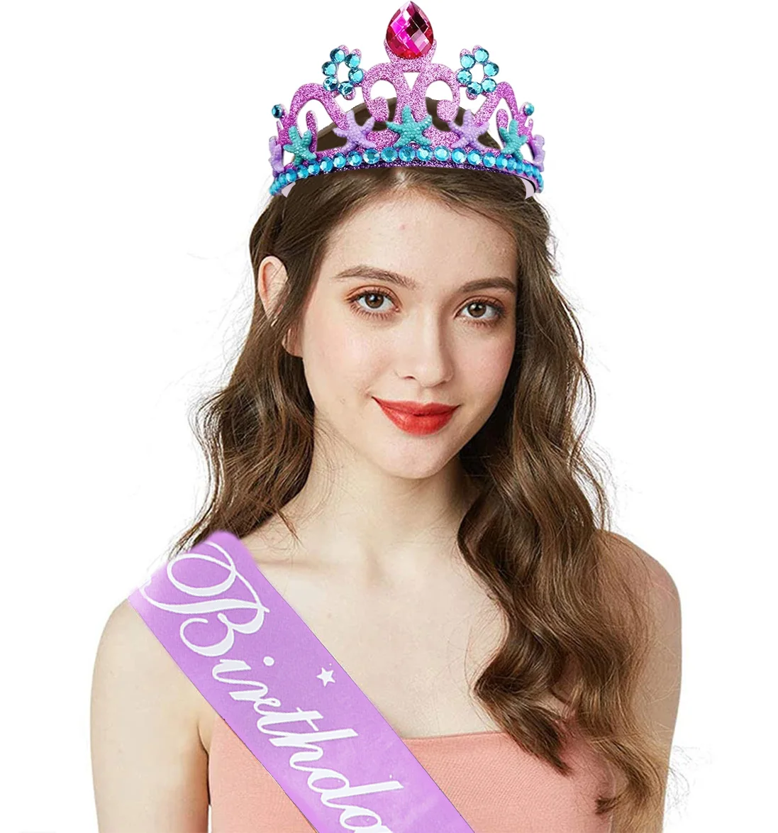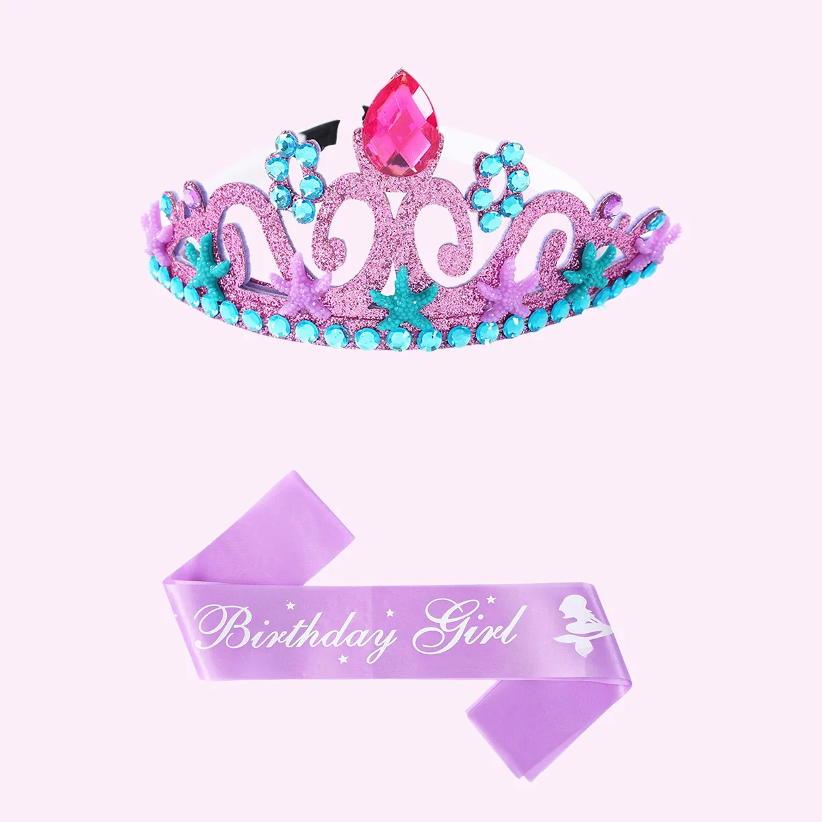 Conjunto de cinta de corona púrpura de sirena, decoraciones para fiesta de cumpleaños de sirena, fiesta de sirena para niña bajo el mar, decoración de fiesta, favores para niñas
