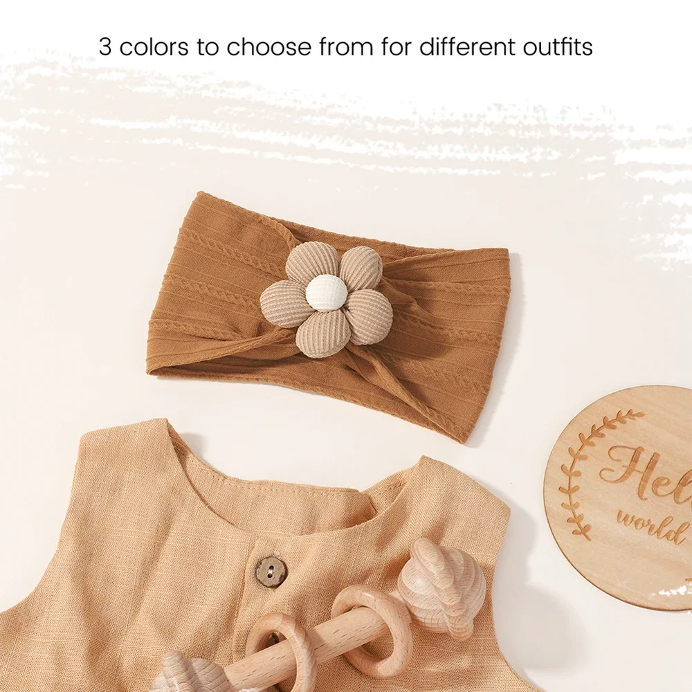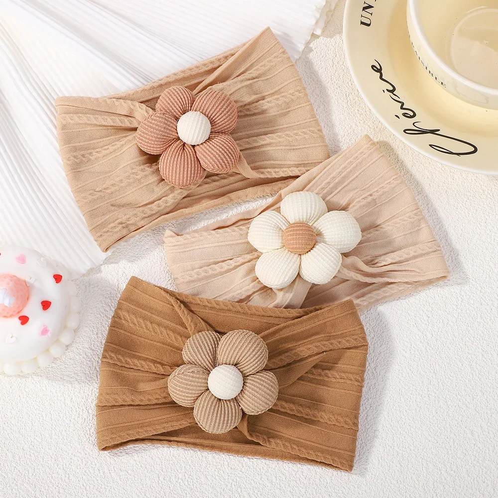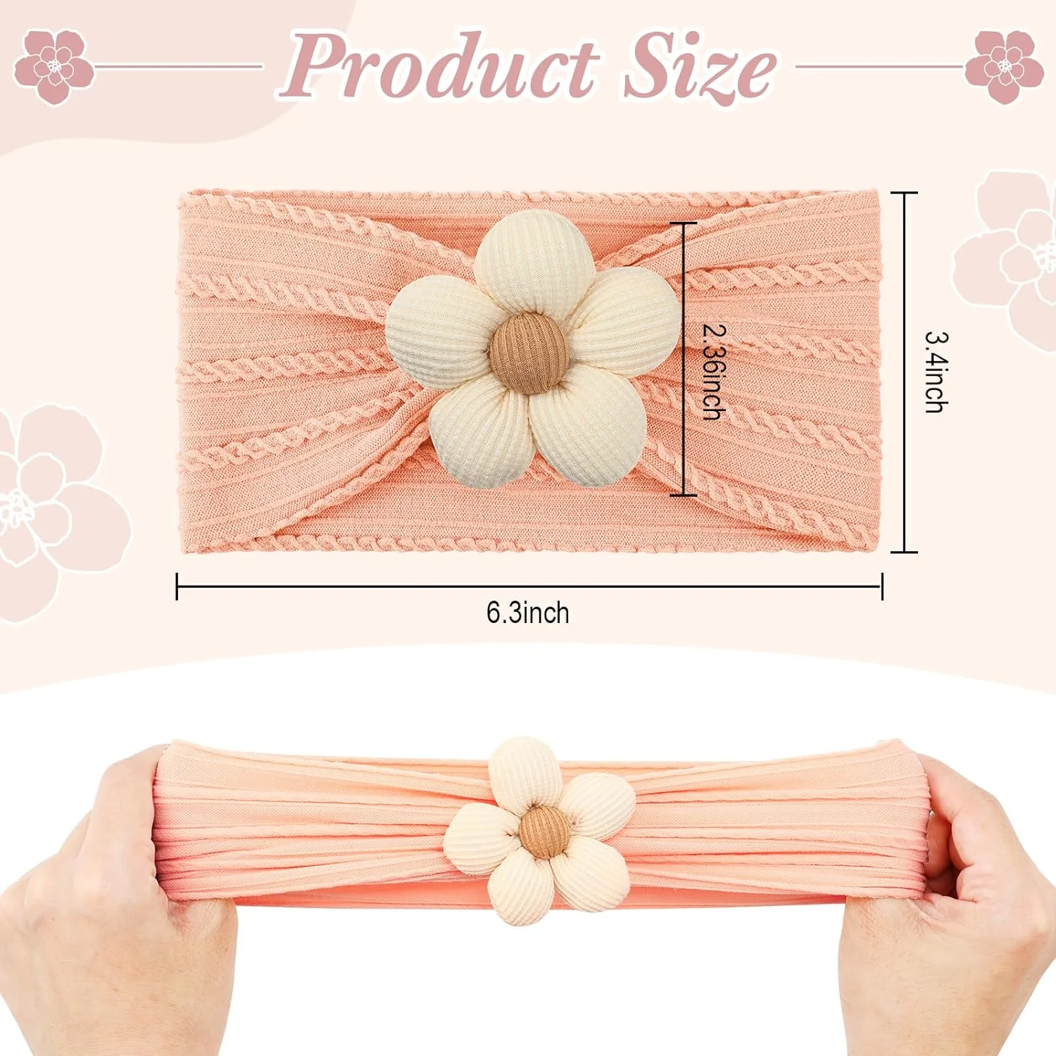Conjunto de diadema para bebé de 3 uds., Cables de punto, turbante ancho, diadema de nailon elástico suave, accesorios para el cabello para recién nacidos y niños pequeños con flores