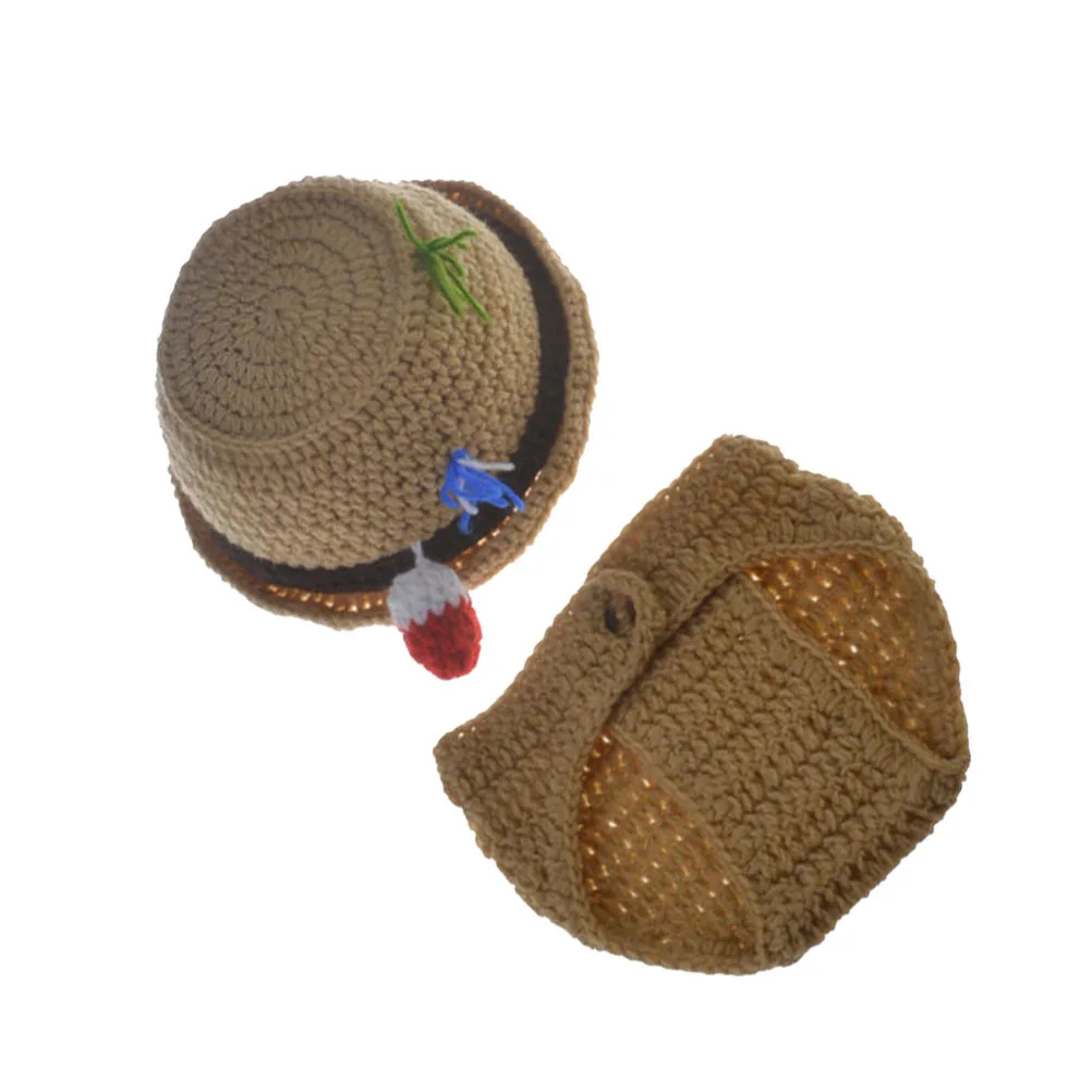 Conjunto de 2 uds de ropa para fotografía de bebé recién nacido, sombrero de pescador tejido de lana, pantalones hechos a mano para sesión de fotos de bebé, accesorios de disfraz, ropa Unisex
