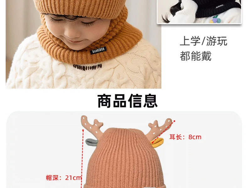 Comprar Conjunto de dos piezas para niños, gorro de punto engrosado térmico, lindo gorro de Jersey, babero, nuevo, Invierno