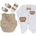 Comprar Conjunto de esmoquin con corona de joyas para bebé, conjunto de regalo de 5 piezas, traje de bienvenida a casa para bebé, prendas de vestir de diseño lujoso para bebé