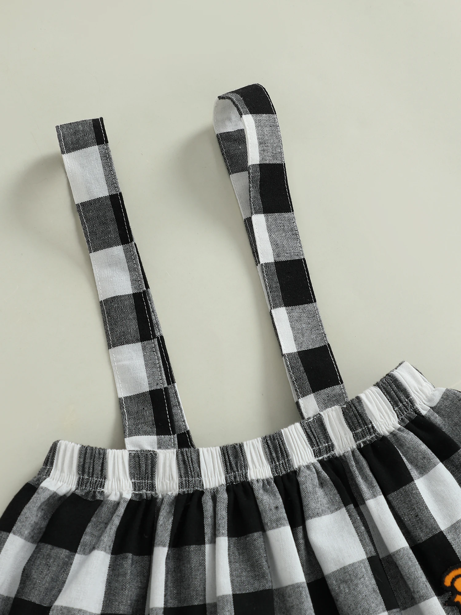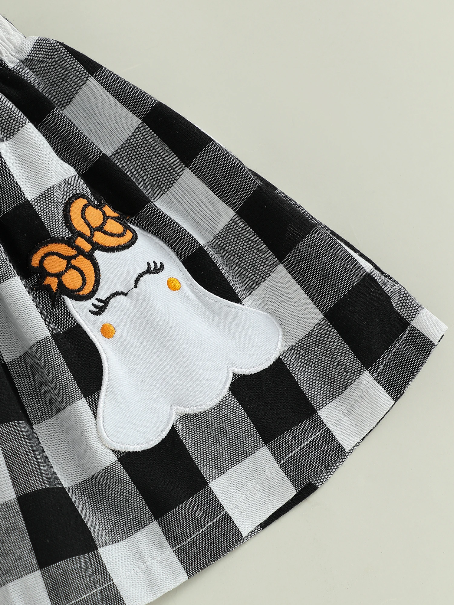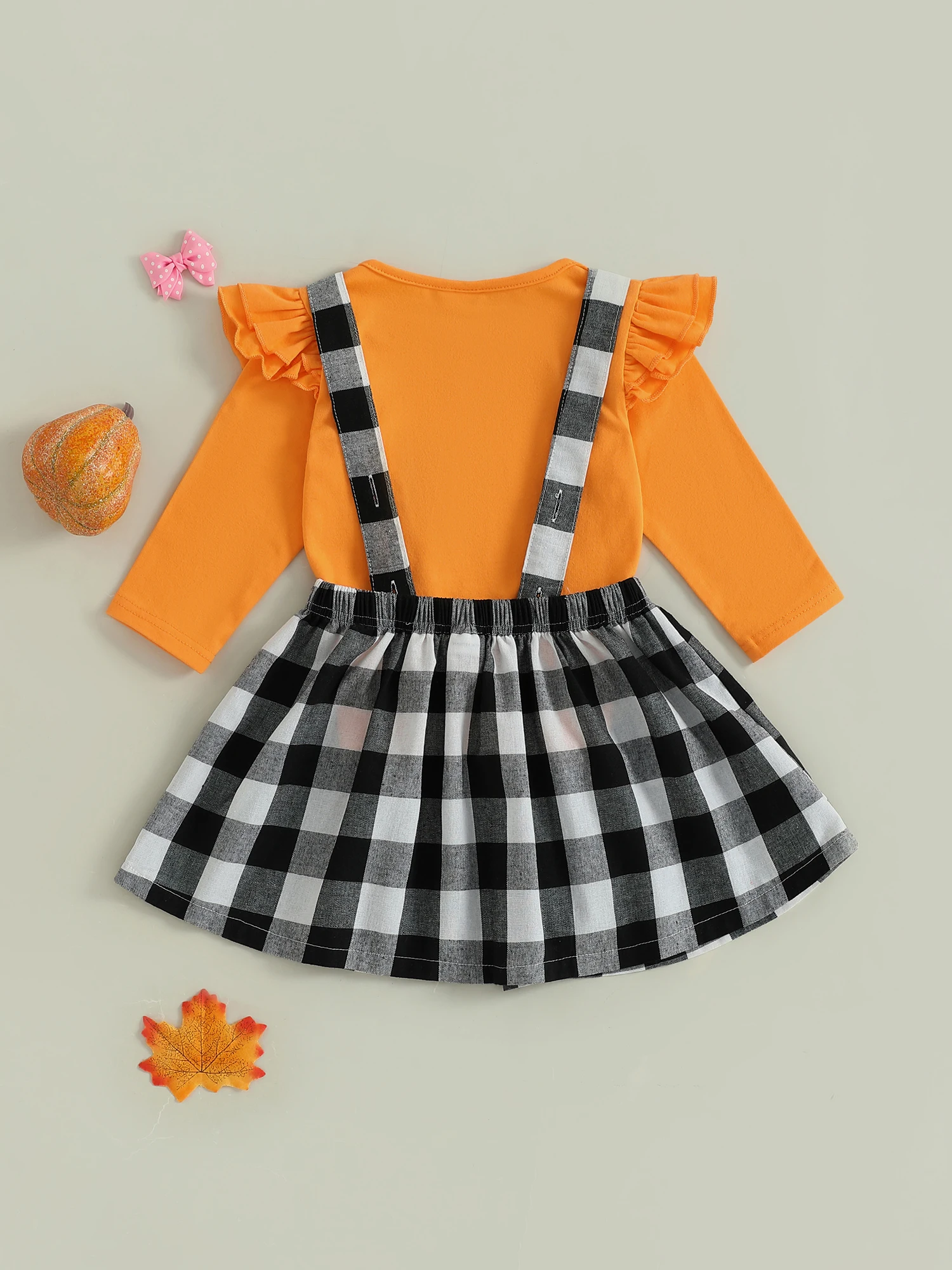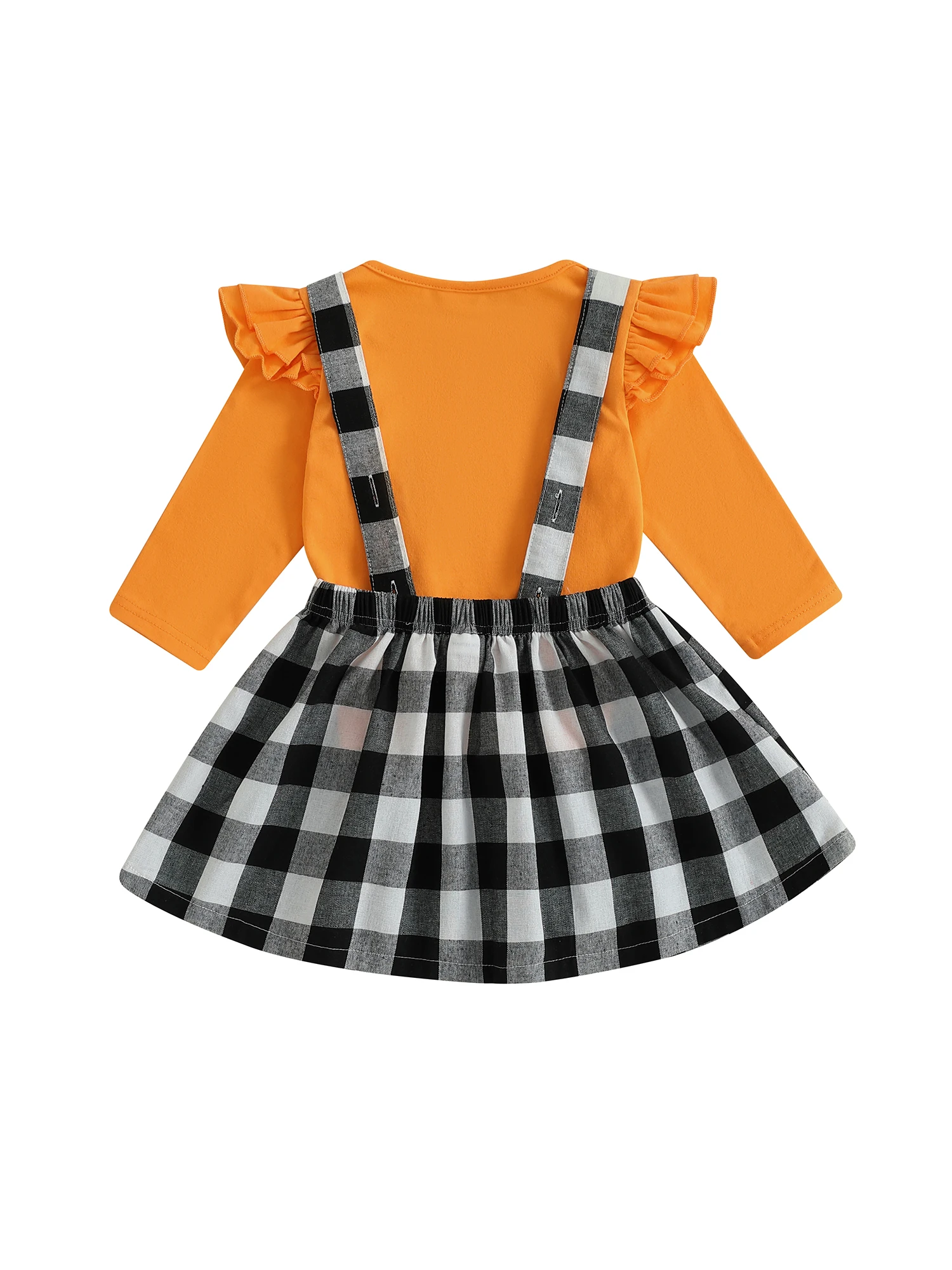 Conjunto de falda para niñas pequeñas, Tops de manga larga de Color sólido y falda general con tirantes a cuadros con patrón de fantasma, traje de Halloween de 2 uds.
