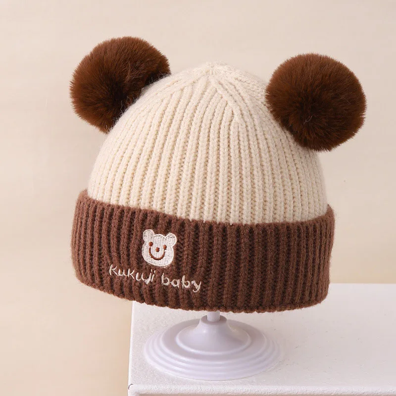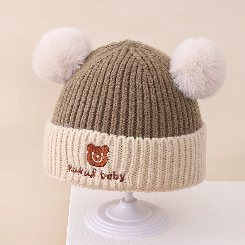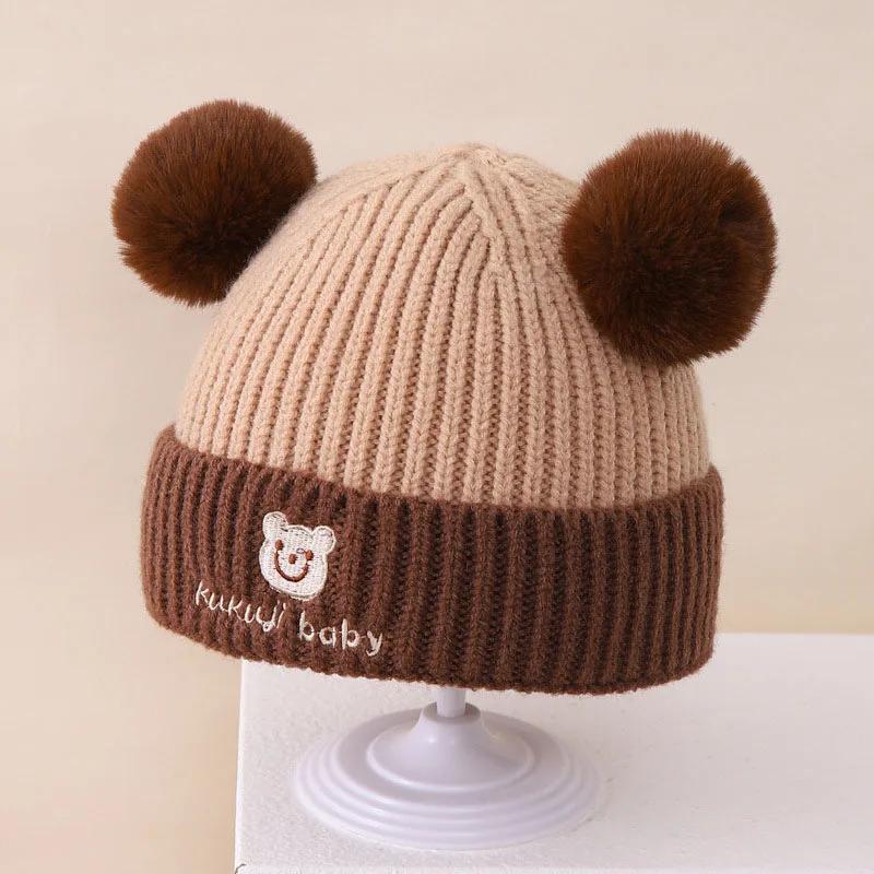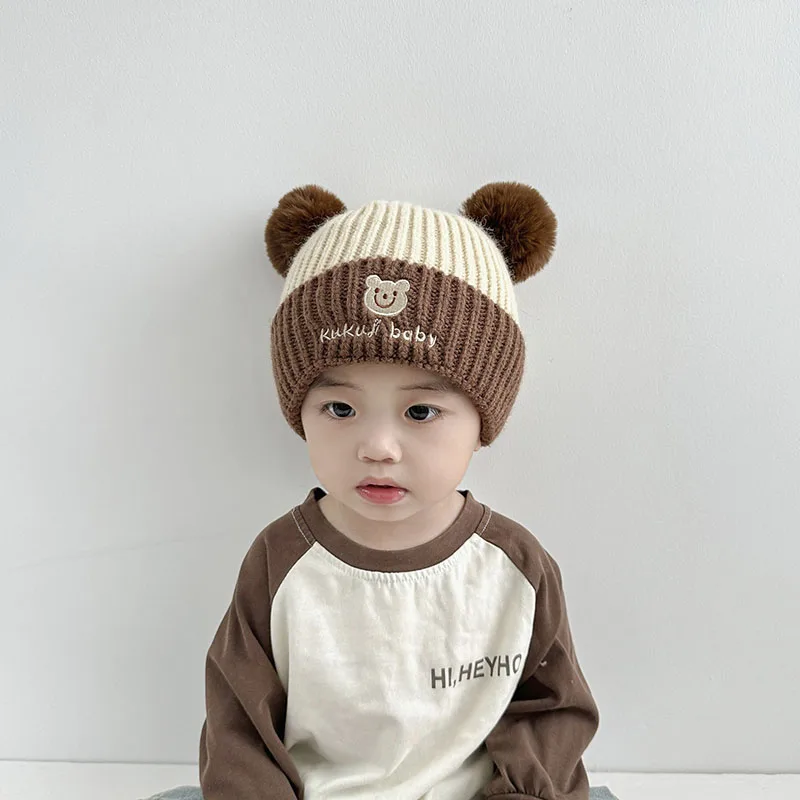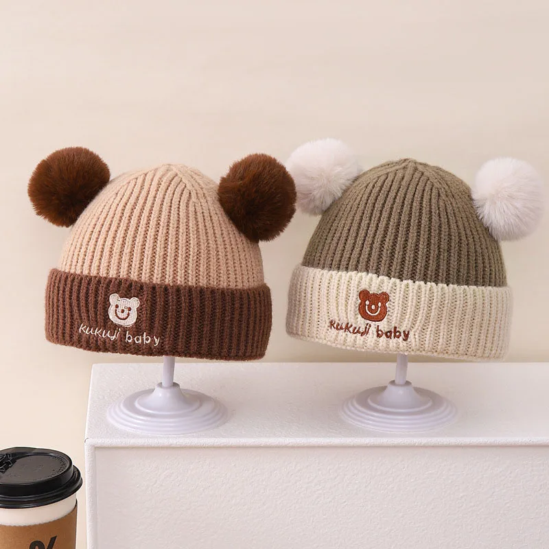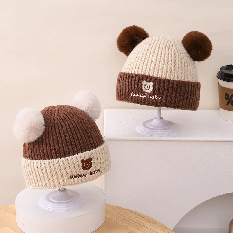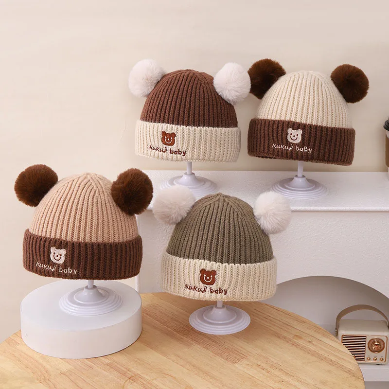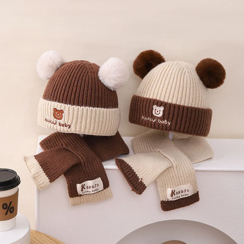 Conjunto de gorro y bufanda de invierno para niños, 4 colores, gorro de punto versátil para niñas, accesorios para niños con oso de dibujos animados