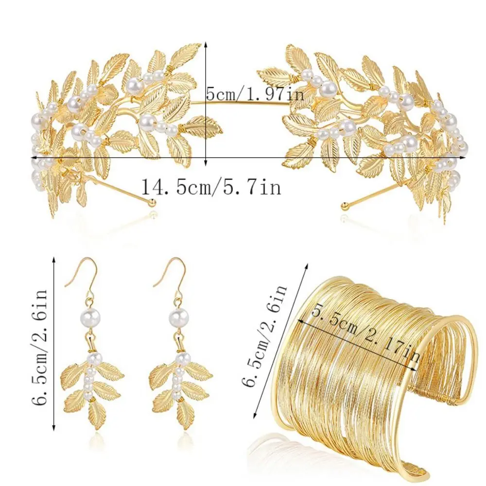Package Include:1set Women's Jewelry Set Exquisite Accessories Set:Retro Greek goddess accessories, rich combination. Wearing these beautiful accessories to exude the Greek goddess -like elegance.