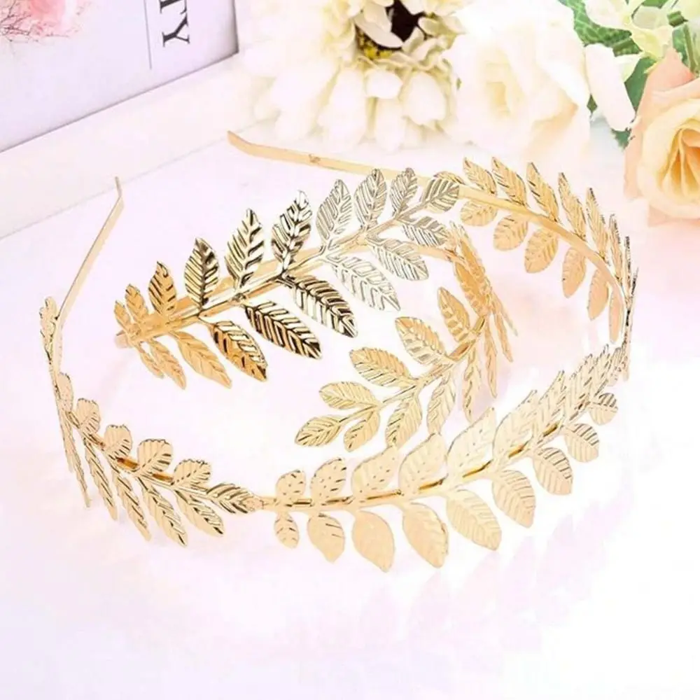 Conjunto de joyería de boda barroca para mujer, pendientes de novia dorados, joyería para el cabello de diosa griega, diademas para el cabello con diseño de hojas