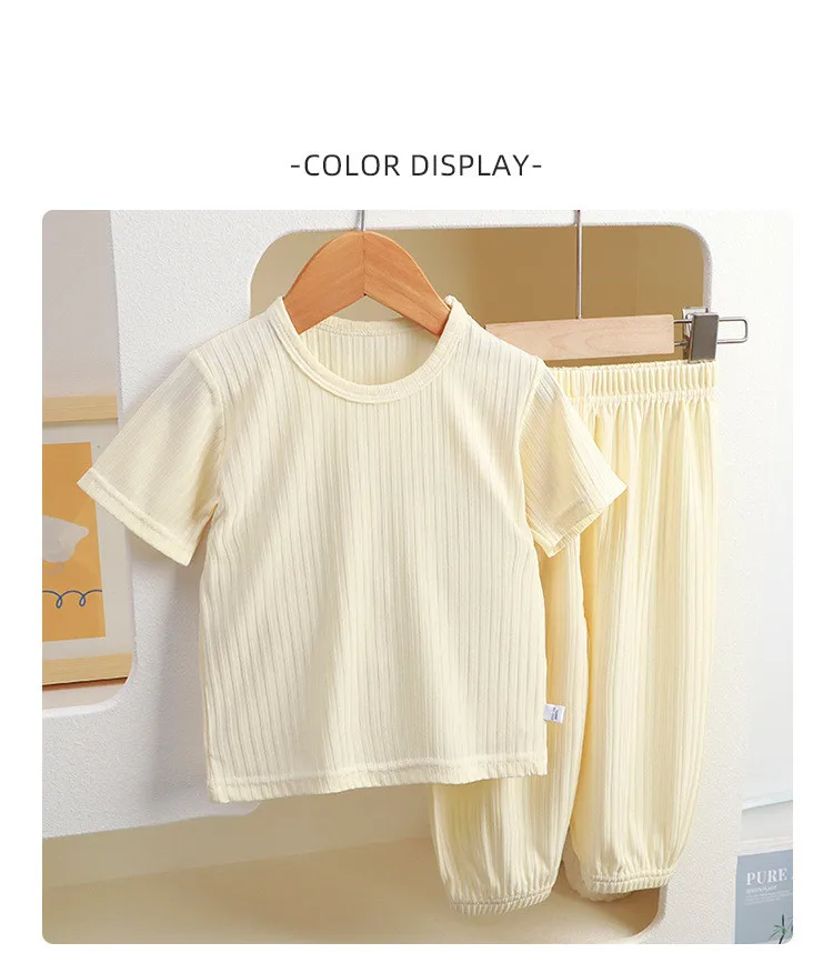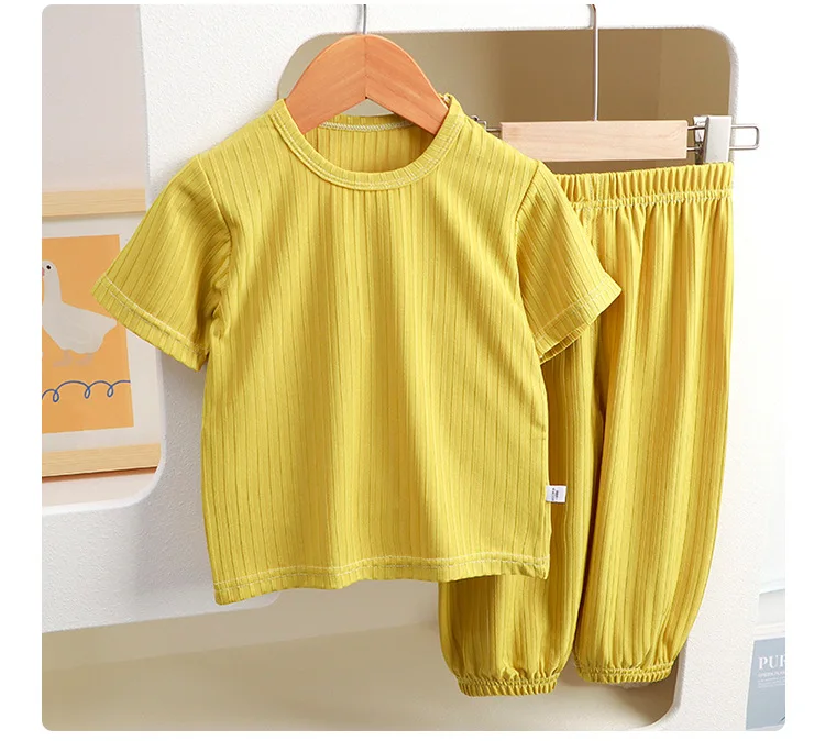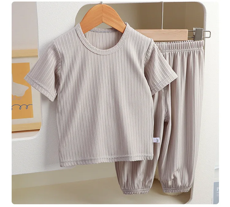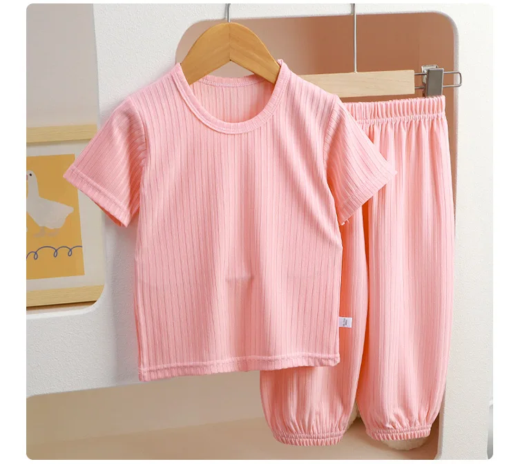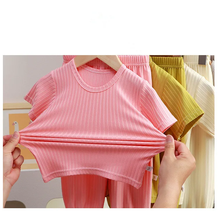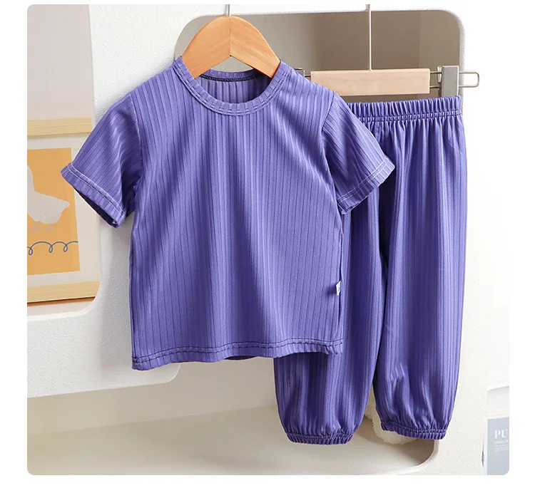 Comprar Conjunto de manga corta con sensación fresca para niños, ropa fina para el hogar, pijamas y ropa de dormir de verano para niños y niñas, verano
