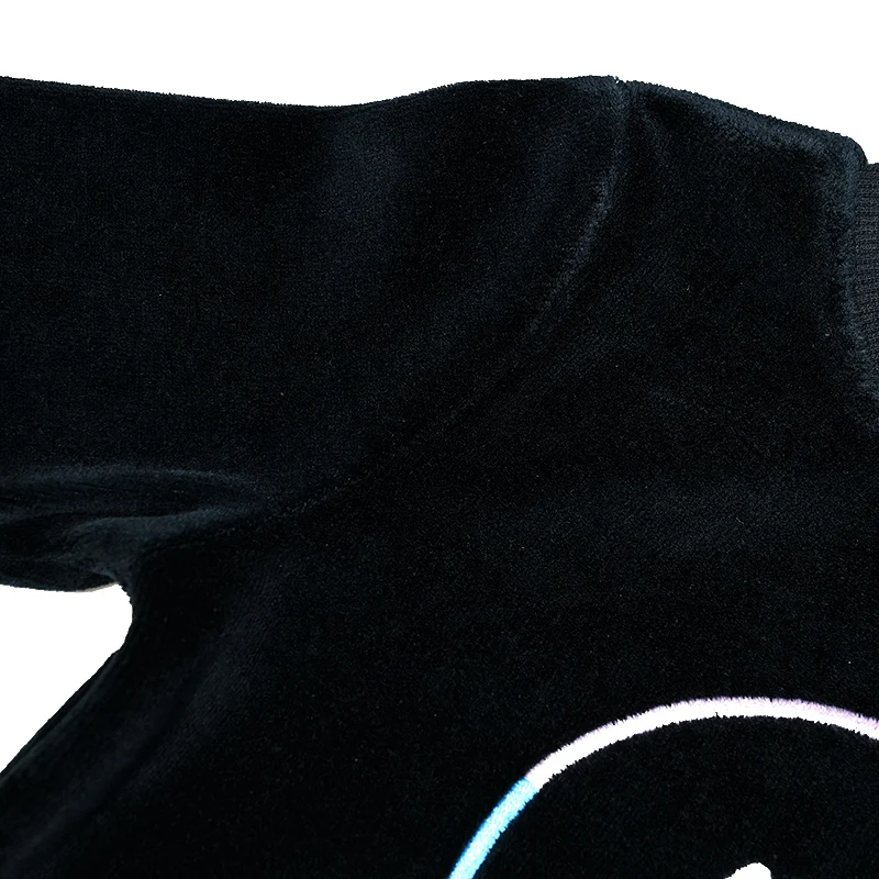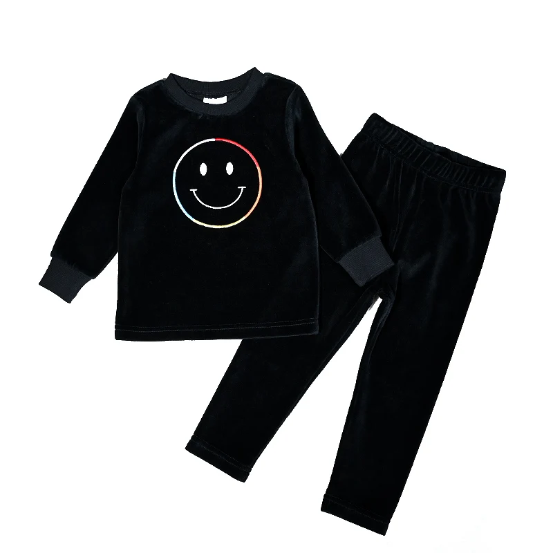 Comprar Conjunto negro de manga larga para niños y niñas, top y pantalón con cuello redondo, conjunto de 2 uds., pijama informal de terciopelo negro para adolescentes, bordado con sonrisa
