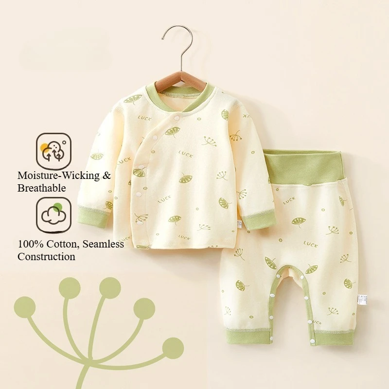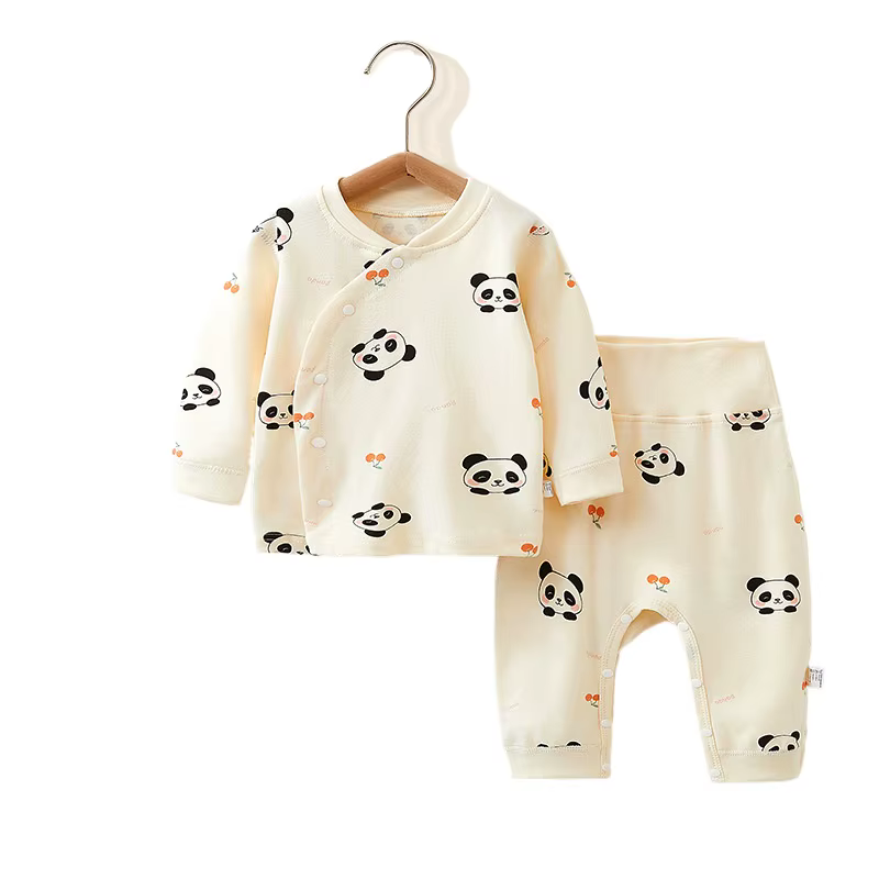 Comprar Conjunto de otoño de algodón para bebé Unisex, traje de 2 piezas con cuello redondo para bebé con lindos estampados de animales y plantas, pijamas cálidos para Halloween al aire libre