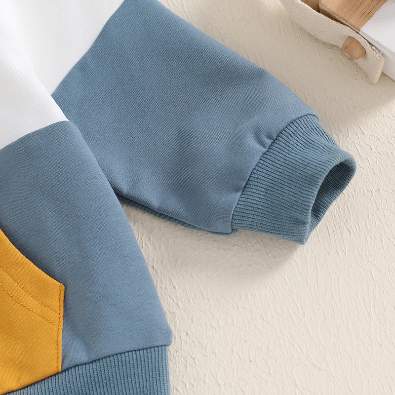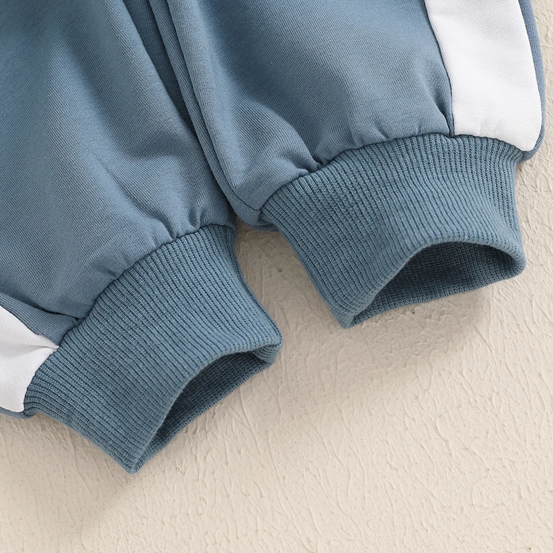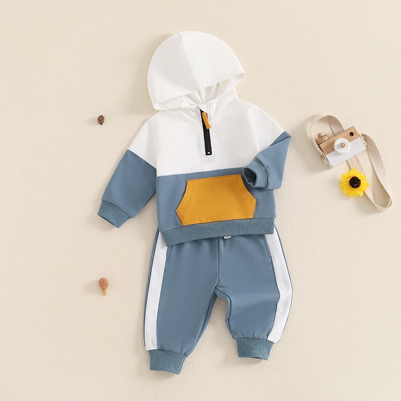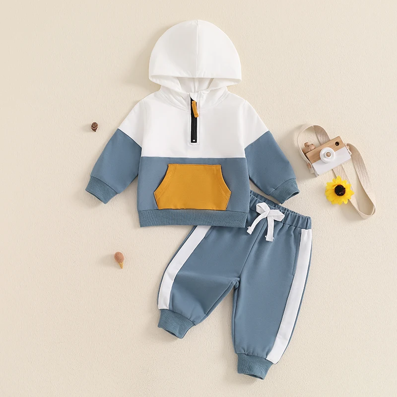 Conjunto de otoño para bebé niño en colores contrastantes, cálido y acogedor.Sudadera para niño con bolsillos delanteros, 1/2 cremallera, capucha y diseño de manga larga.Pantalón bebé niño con diseño de cintura elástica para asegurar un ajuste cómodo, perfecto para el otoño.