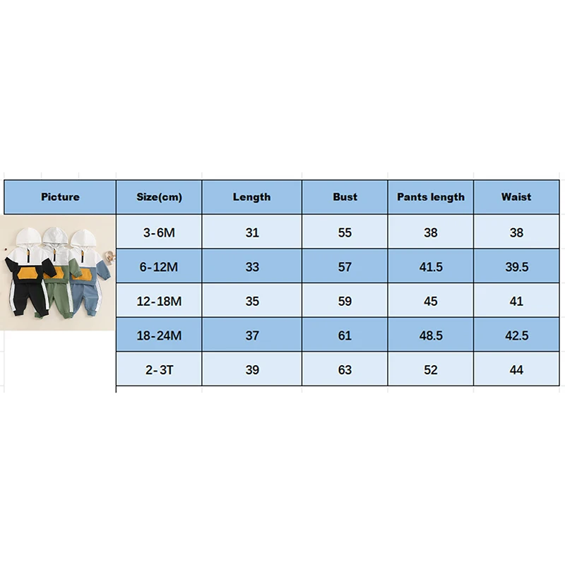 3-6M Longitud de la camiseta: 31 Busto: 55 Longitud de los pantalones: 38 Cintura: 38 Edad recomendada: 3-6 meses