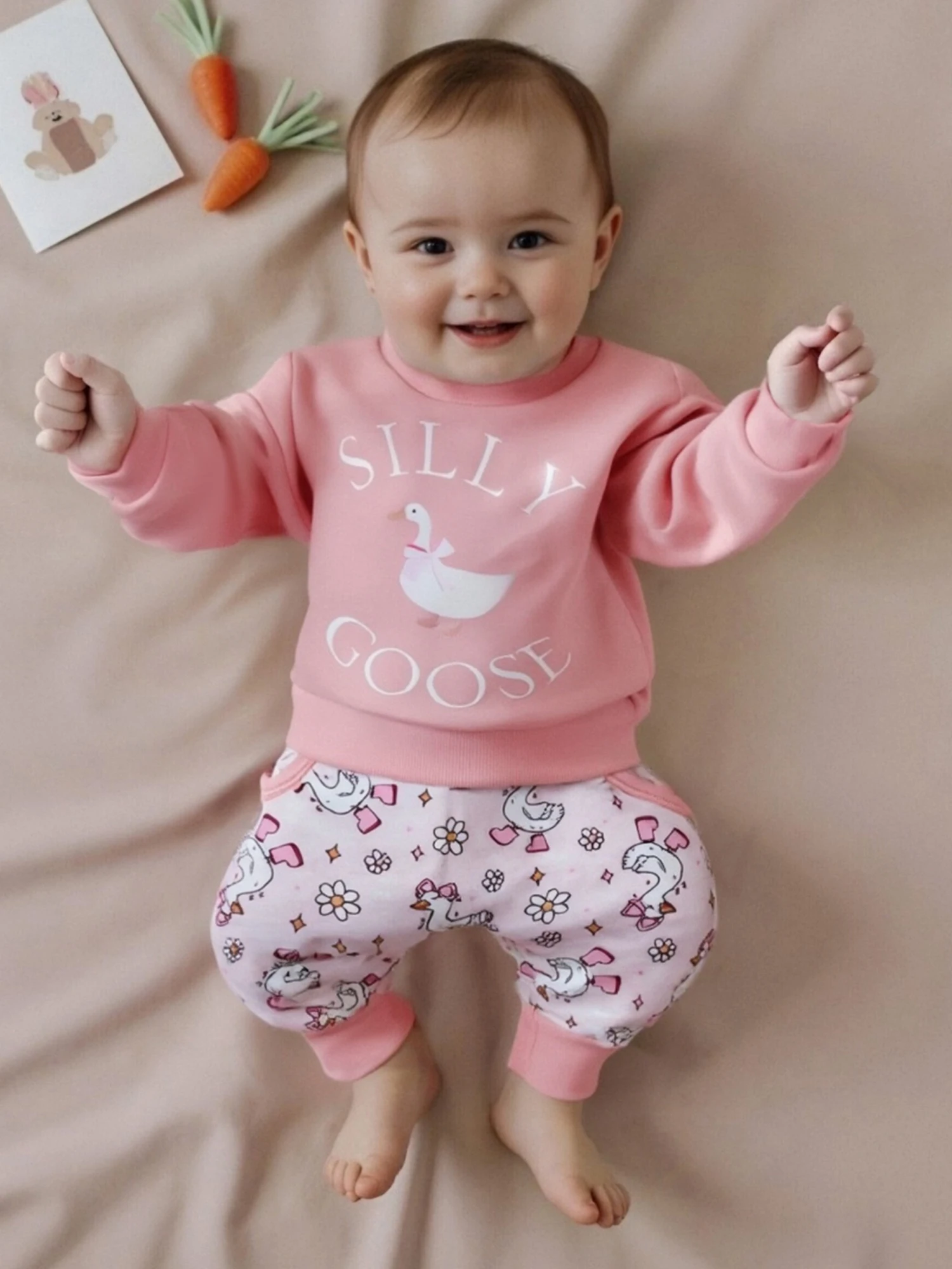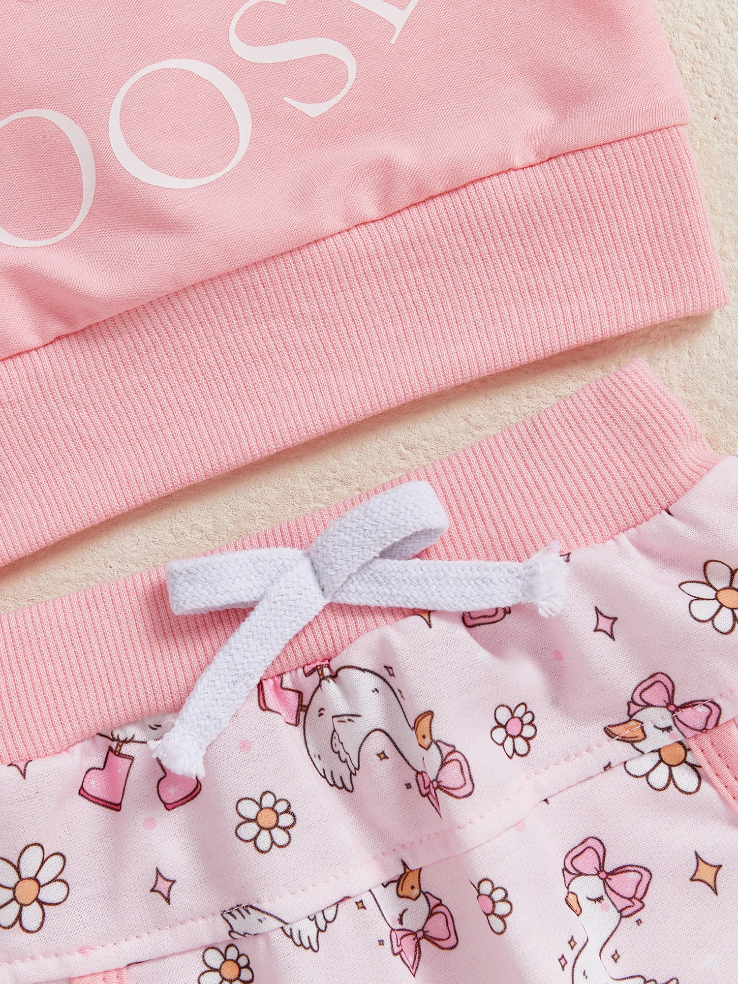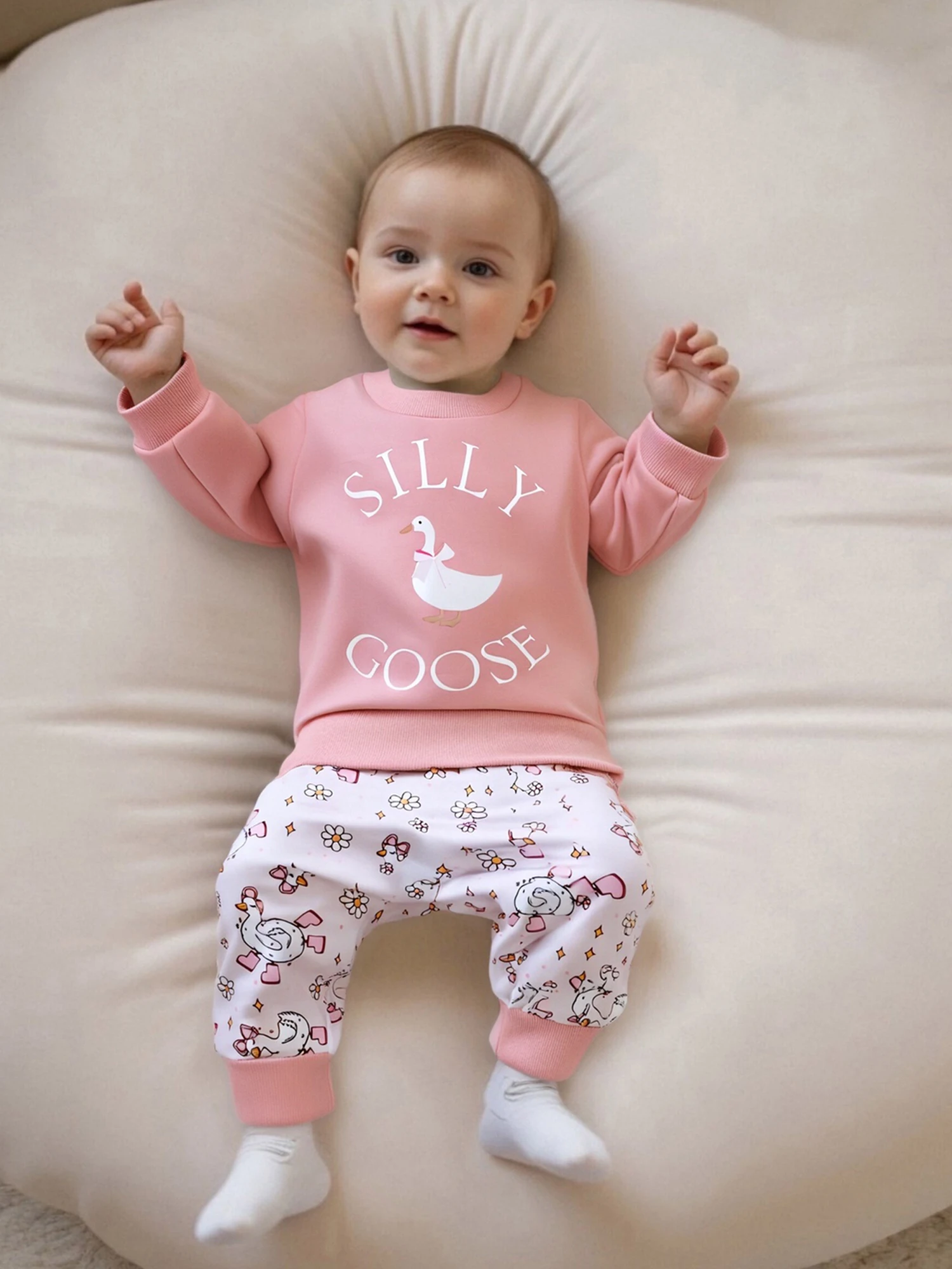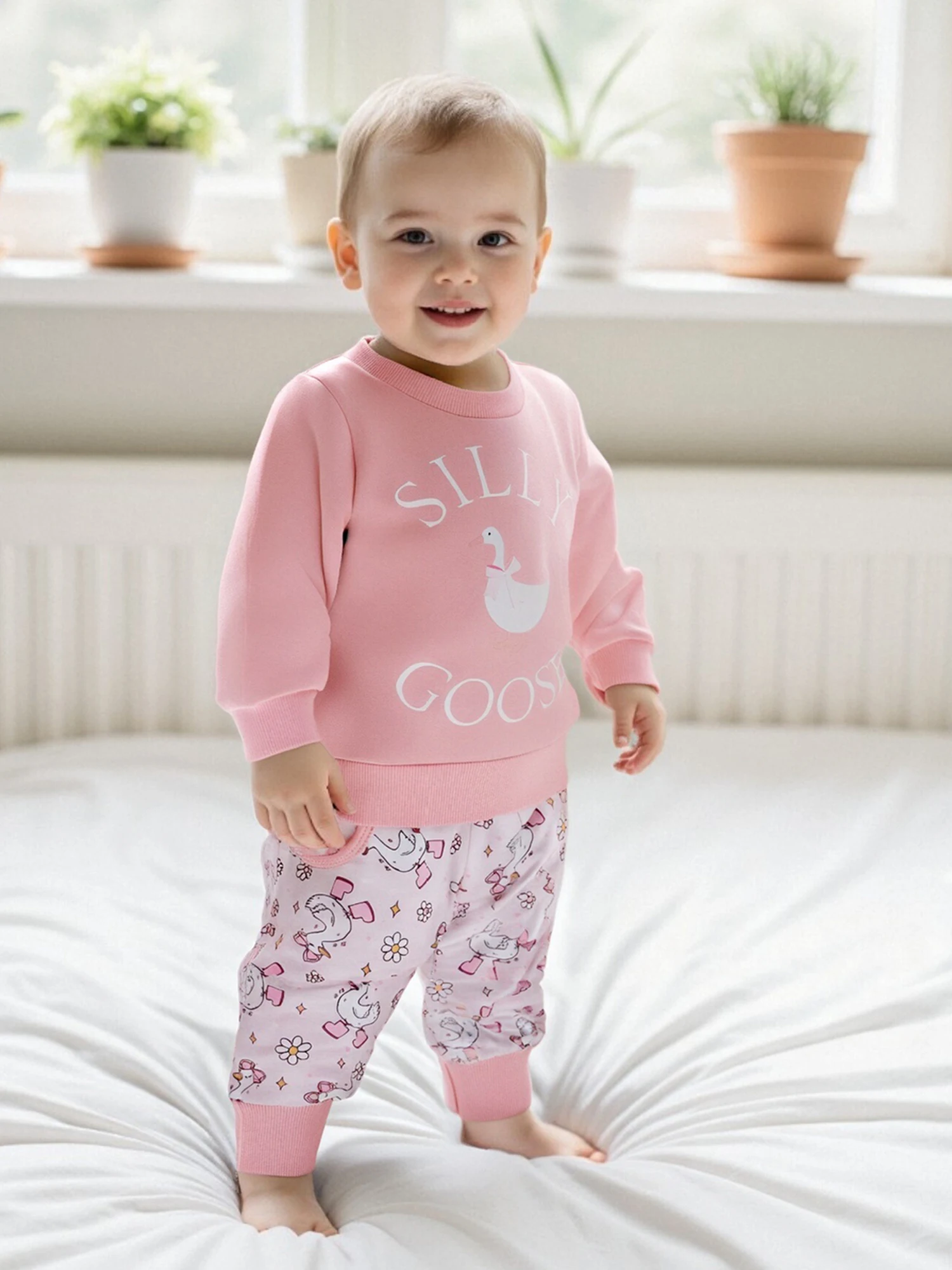 Conjunto de otoño para niñas pequeñas, jersey de manga larga con estampado de ganso a la moda, pantalones con lazo y bolsillo, traje de 2 uds.