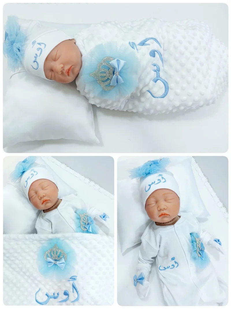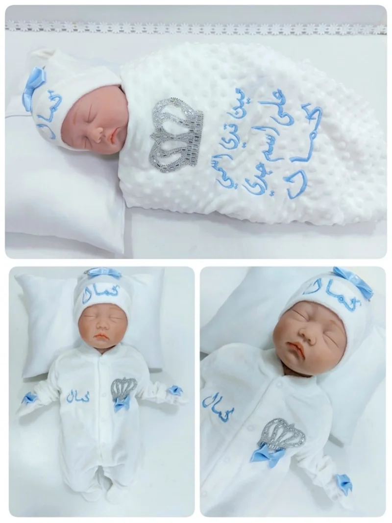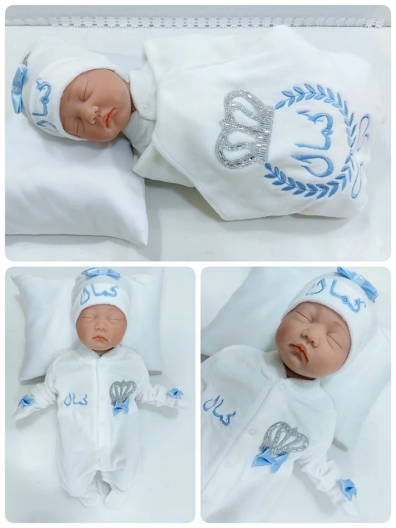 Nuestro juego de 3 piezas está hecho de algodón suave y grueso.Están adornados con botones de diamantes de imitación, joyas de corona y lazos.