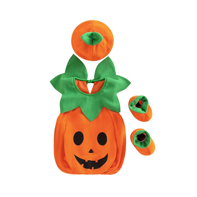 Ropa para bebés pequeños, conjunto de Pelele para niños y niñas, cuello redondo, sin mangas, Pelele con forma de calabaza, sombrero, un par de zapatos, ropa para niños