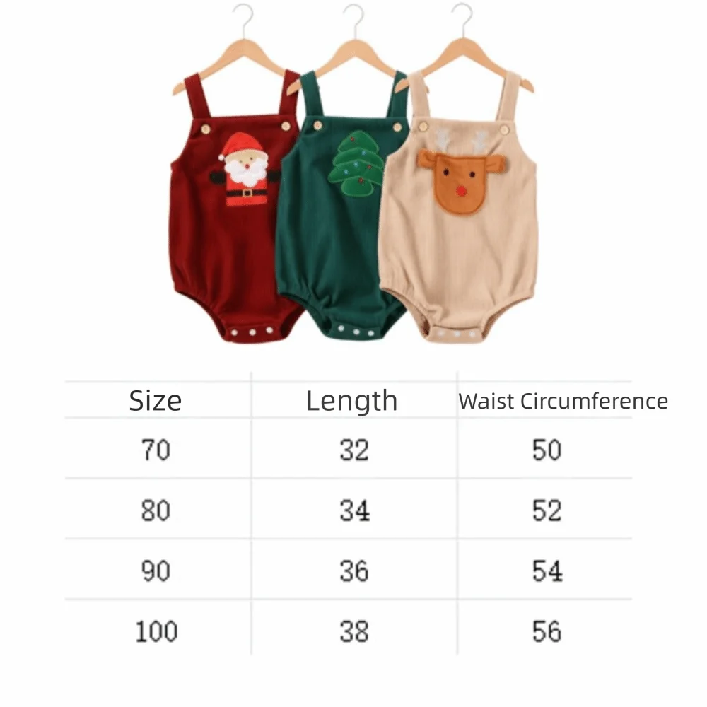 - Unique & Fashionable Suspenders Design:This jumpsuit stands out with its uniquely stylish suspender design, adding a touch of dapper charm to the traditional baby Christmas costume. The playful cartoon characters adorning the outfit make it irresistibly cute. It's the perfect choice for parents who want their baby to have a distinctive and photo-ready look that goes beyond a simple bodysuit.