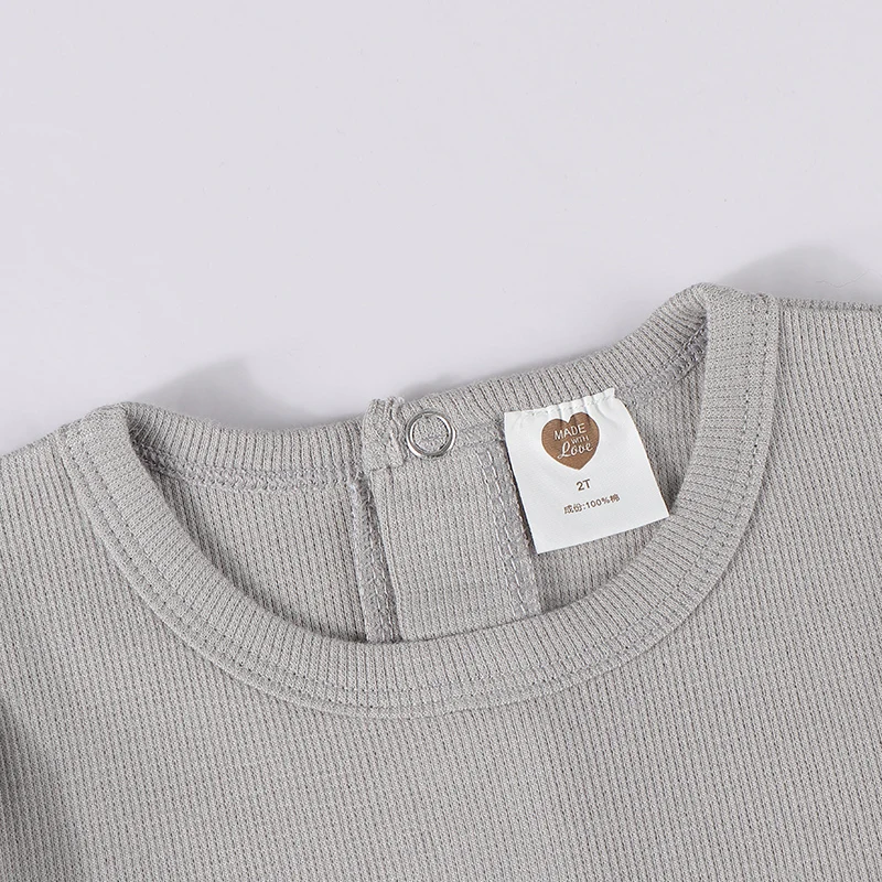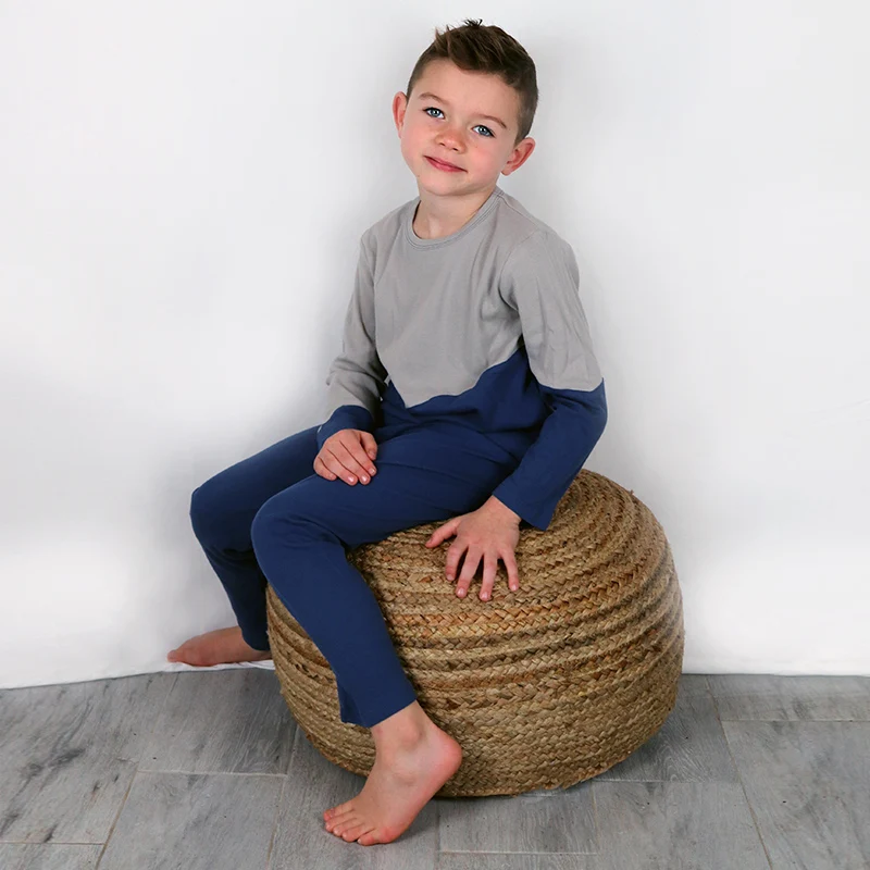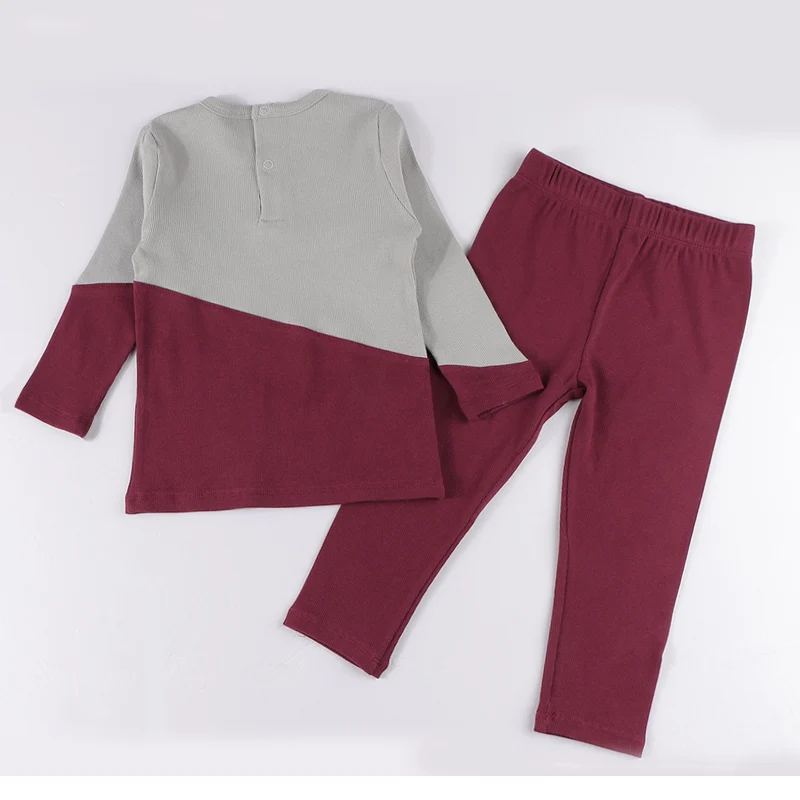 Conjuntos de pijamas de 2 piezas para niños, top y pantalones, colores contrastantes, ropa para niños acanalados, ropa para niño y niña, conjunto de cuello redondo para verano/primavera para bebé