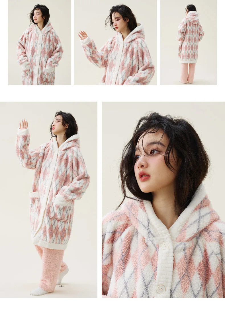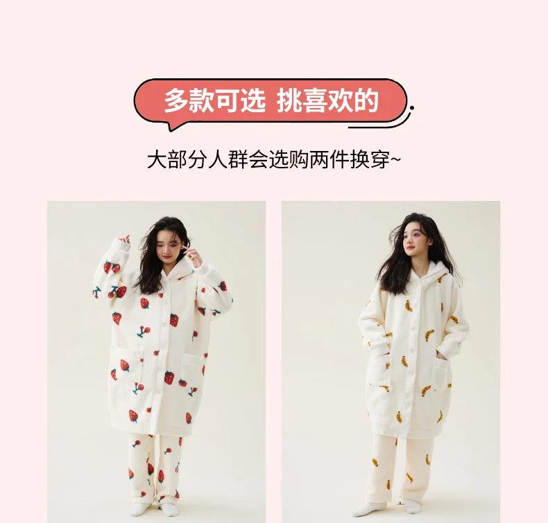 Comprar Conjunto de pijama de lana de Coral grueso, ropa de casa bonita, se puede usar fuera del invierno, otoño e invierno, nuevo