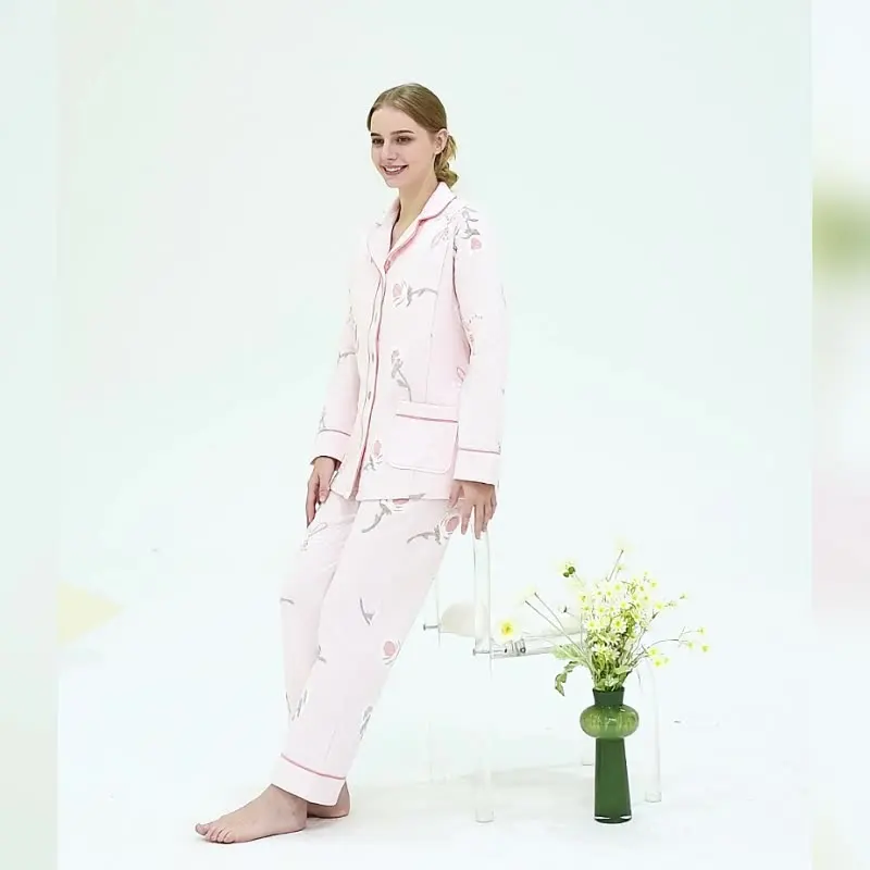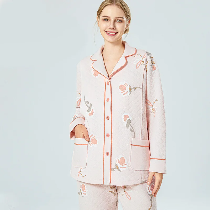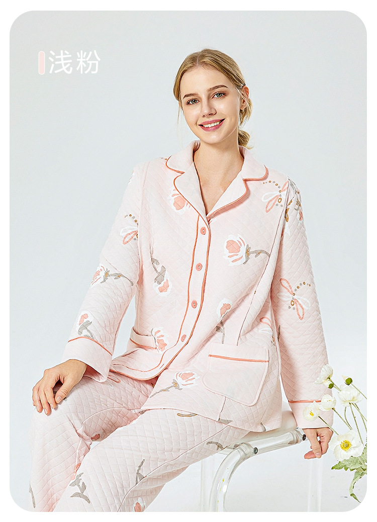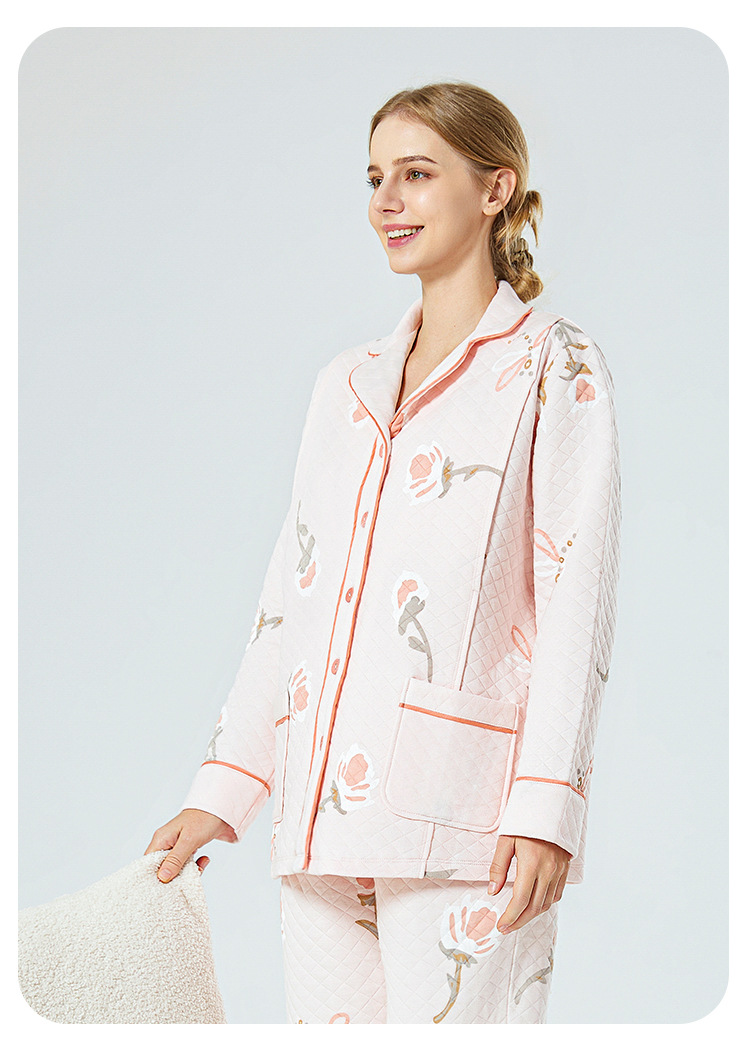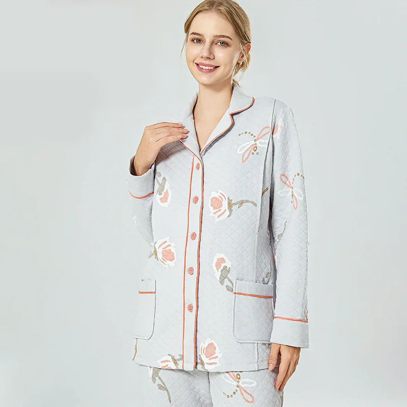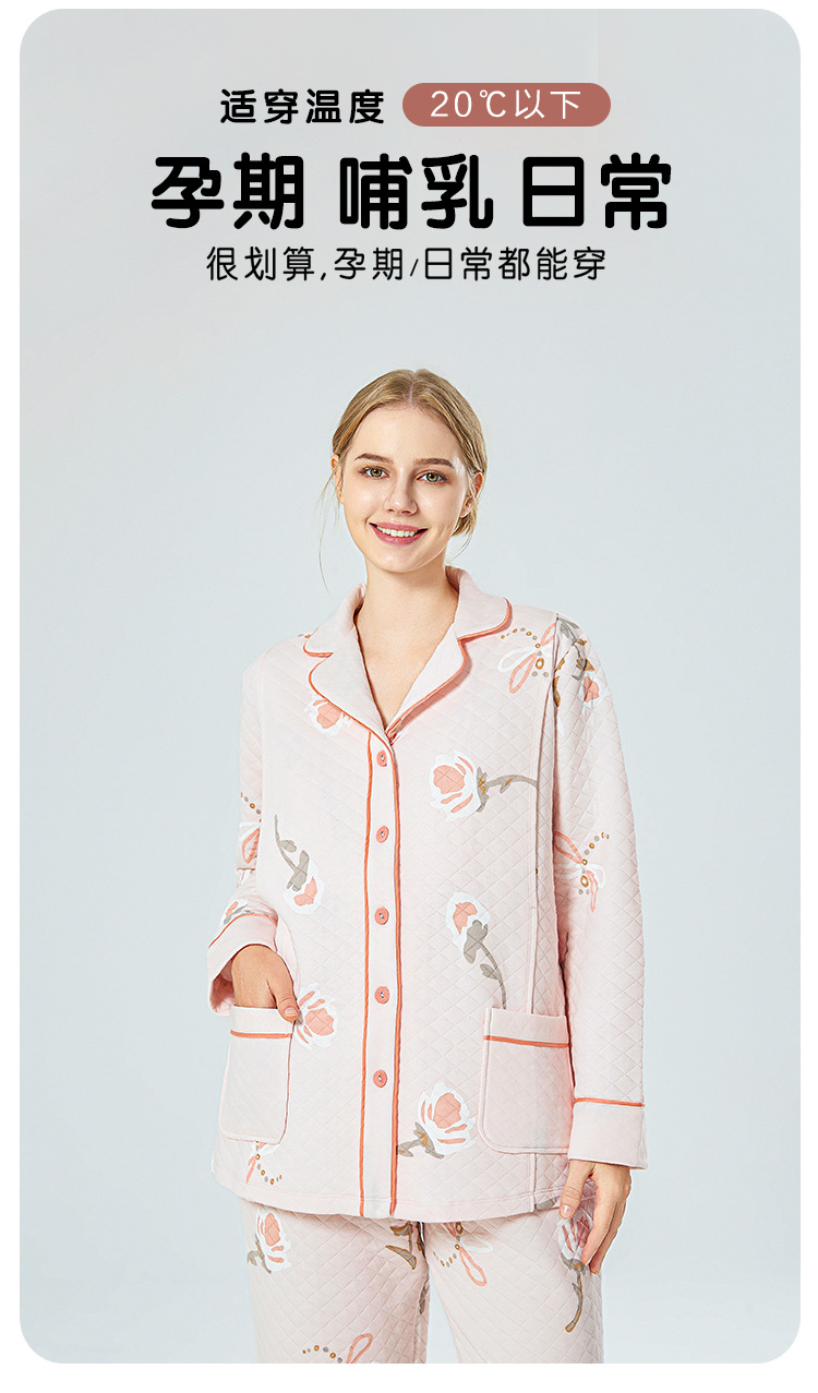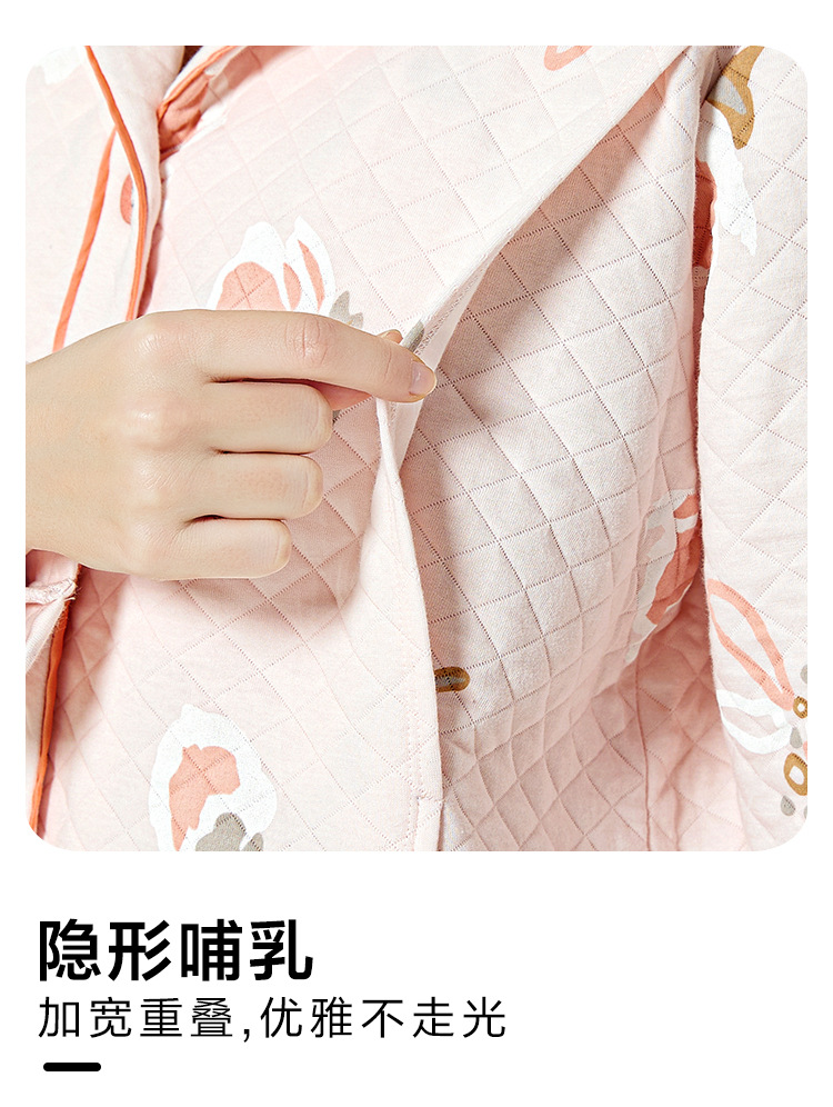 Conjunto de pijamas de maternidad gruesos y cálidos para invierno, Pijama de lactancia con estampado dulce para madres lactantes, ropa cómoda para mujeres embarazadas