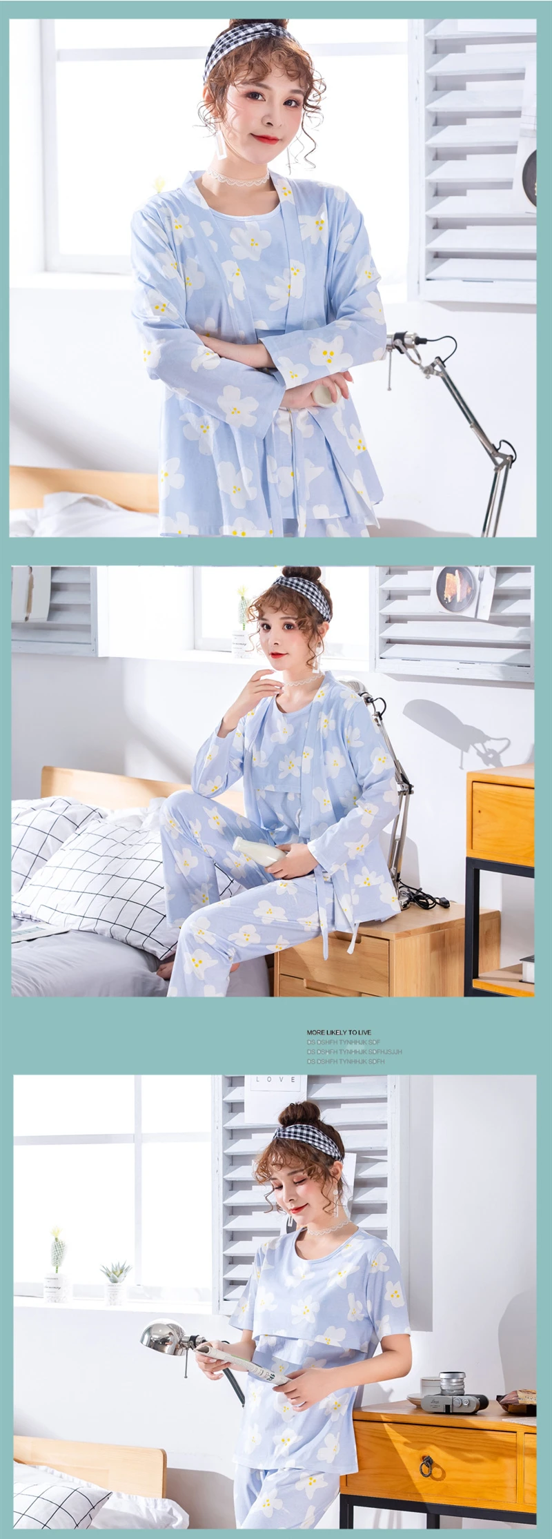Comprar Conjunto de pijamas de maternidad para mujeres embarazadas, ropa de dormir para amamantar, con estampado, trajes sueltos para embarazo, 3 unids/set