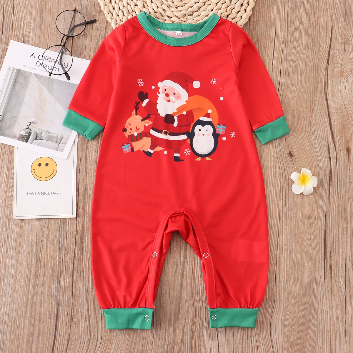 Comprar Conjunto de pijamas navideños a juego para la familia, ropa de dormir con costuras de Papá Noel para adultos y niños, mono de bebé, 2021