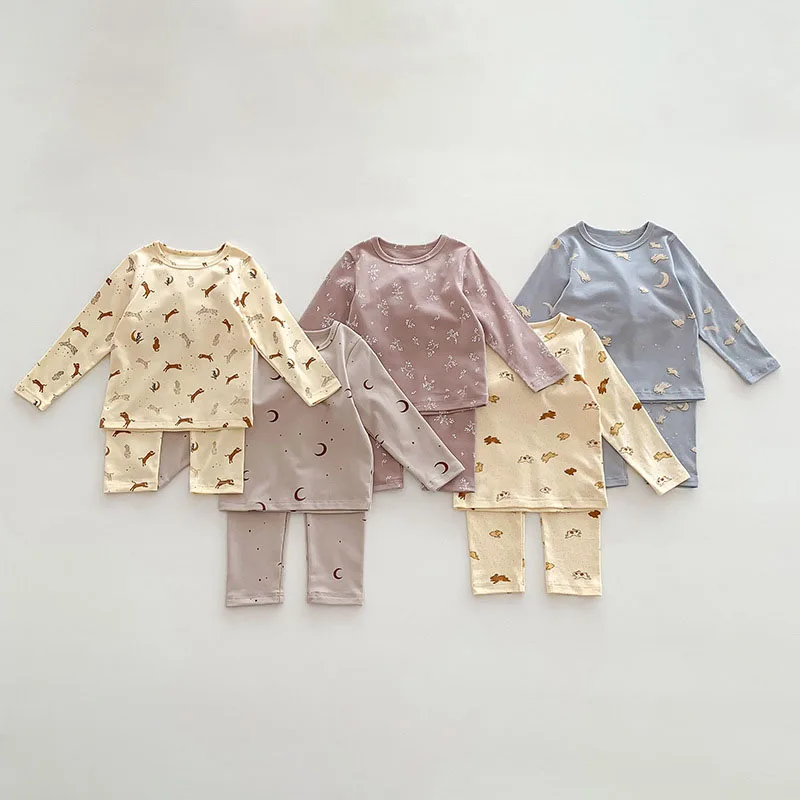 Comprar Conjunto de pijamas para niños y niñas, ropa de algodón suave, Tops, camisas, pantalones, pijama para el hogar