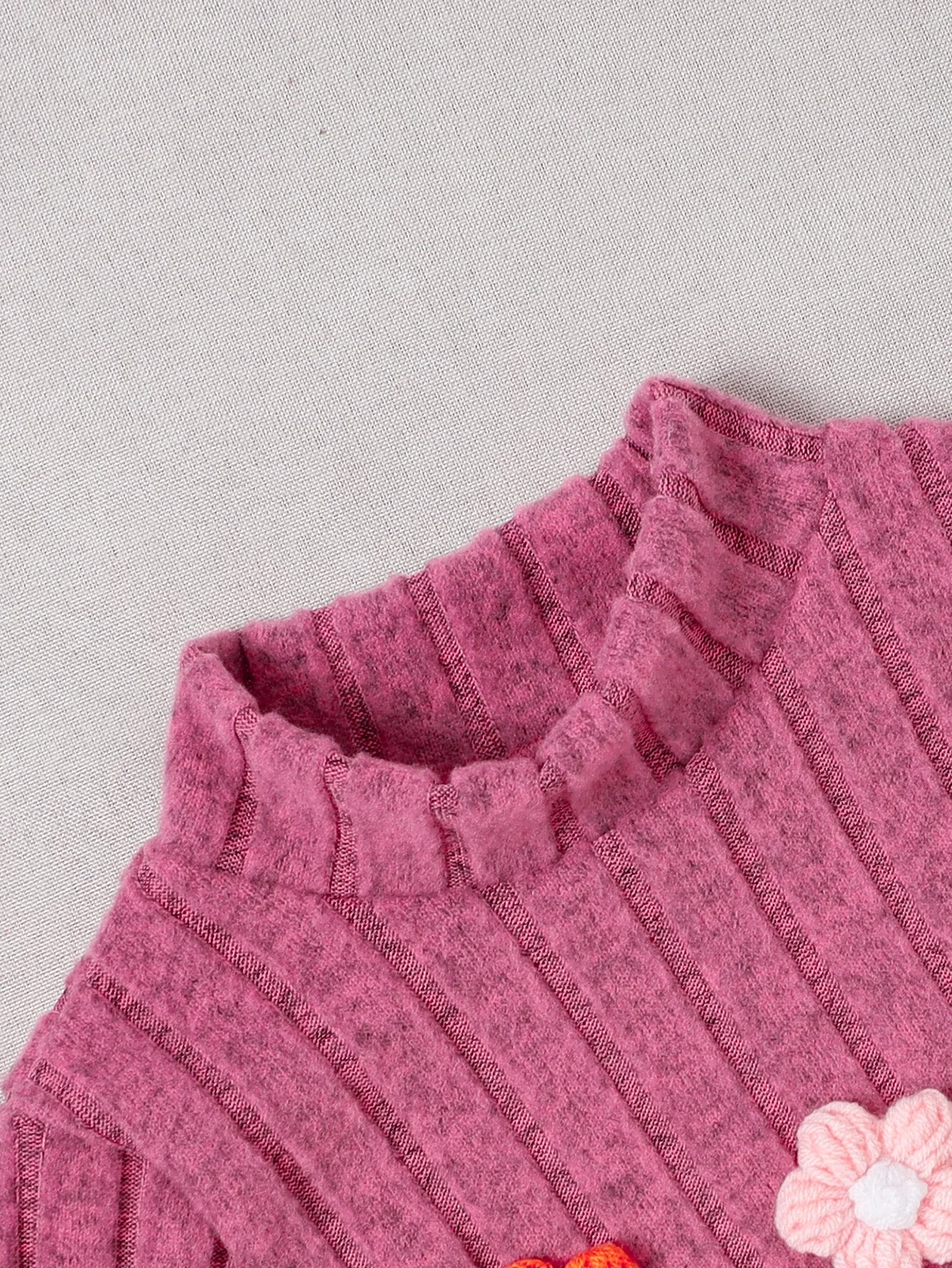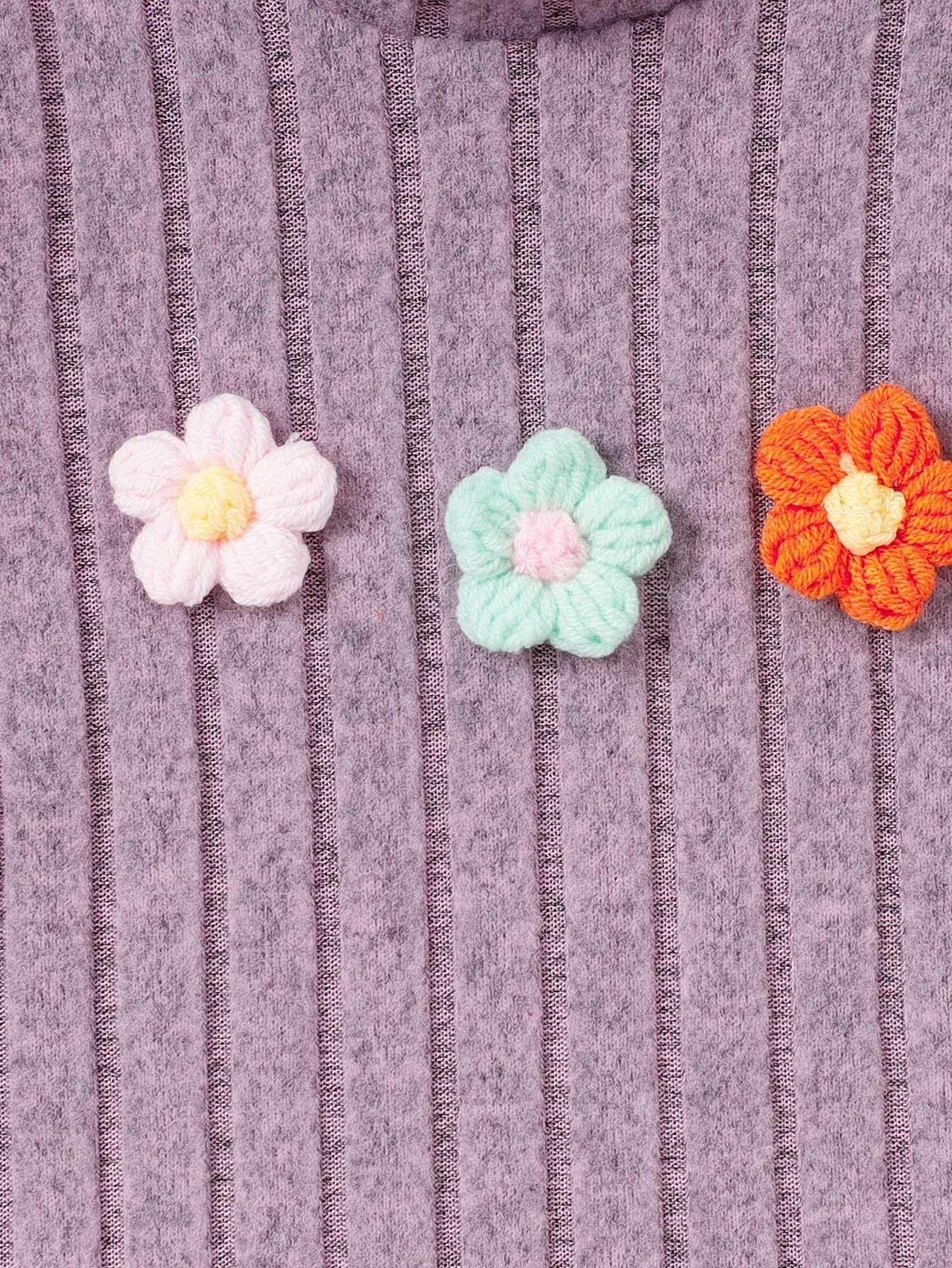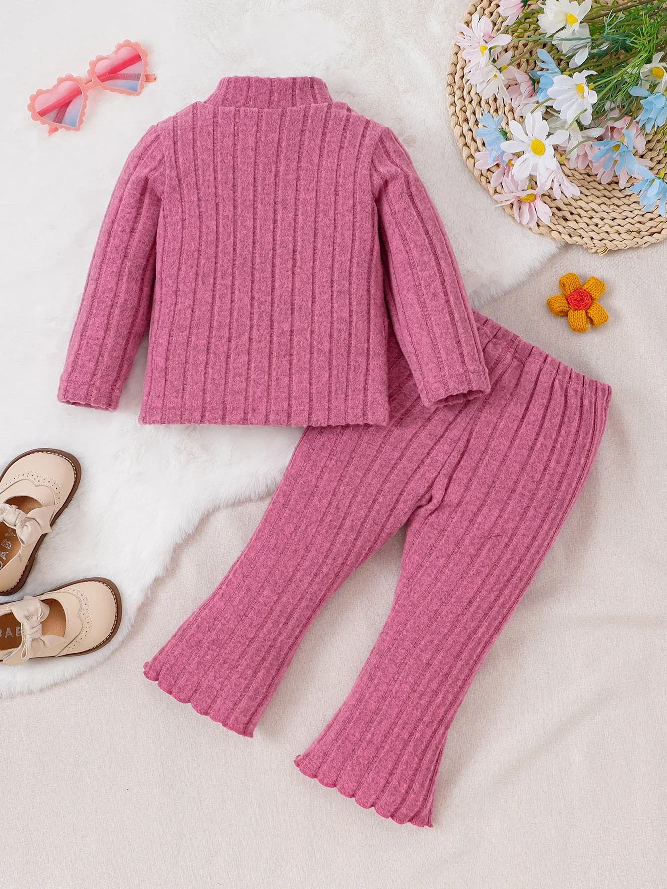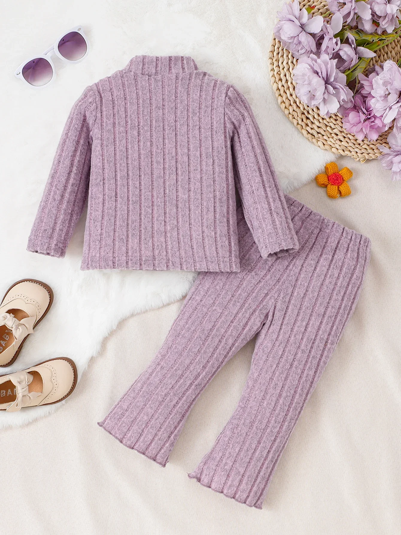 Conjunto de punto para niña pequeña, pantalones de manga larga a rayas lisas con decoración de flores, ropa informal de otoño e invierno para niño de 0 a 3 años, 2 uds.