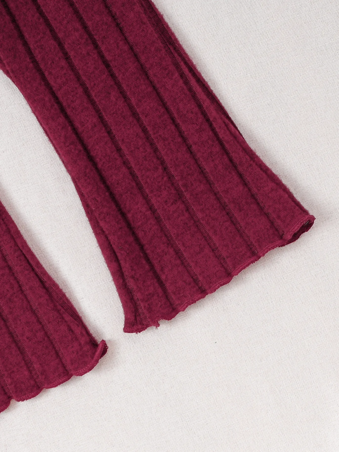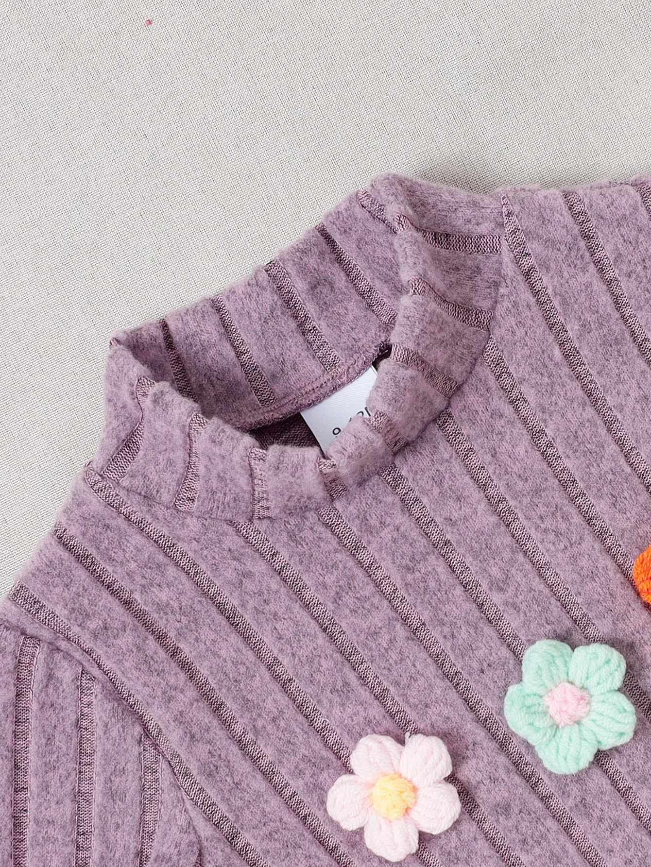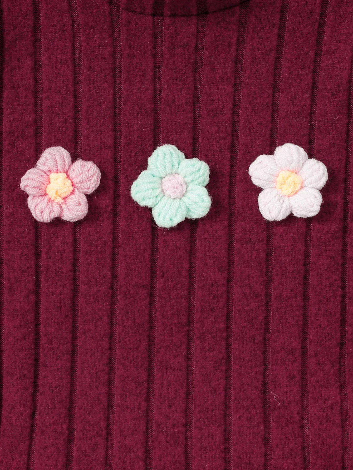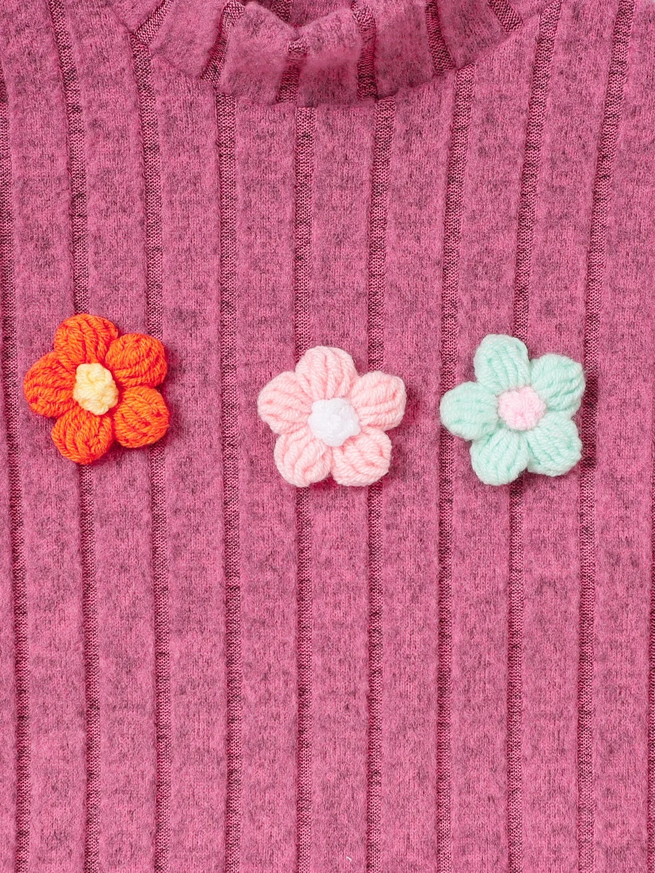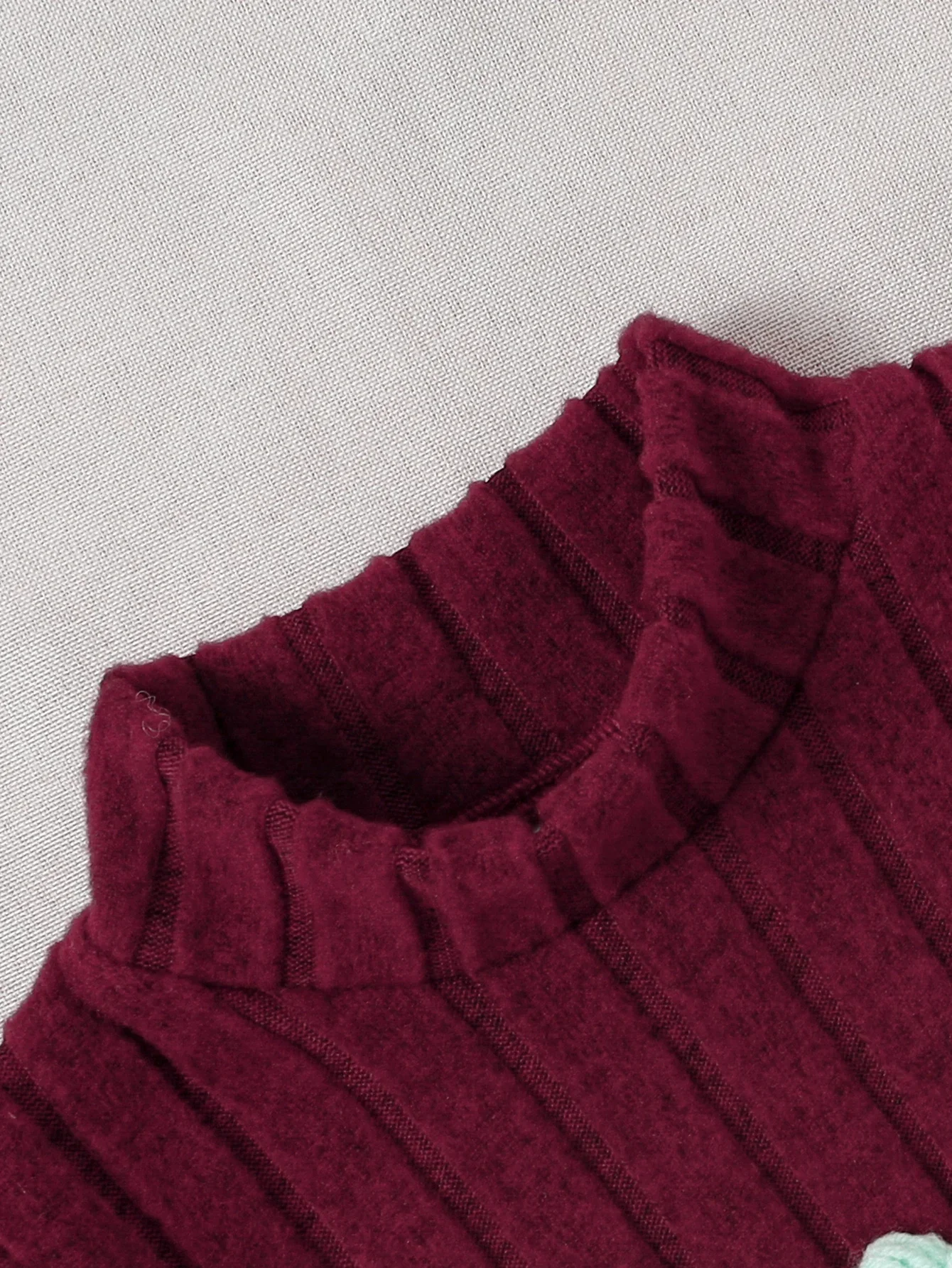 Conjunto de punto para niña pequeña, pantalones de manga larga a rayas lisas con decoración de flores, ropa informal de otoño e invierno para niño de 0 a 3 años, 2 uds.