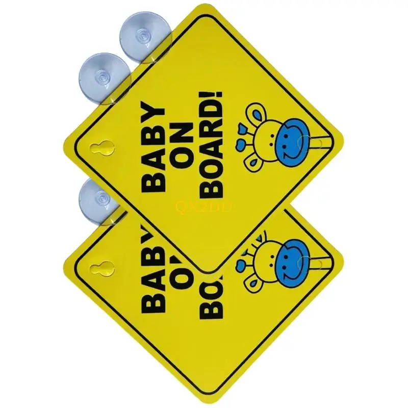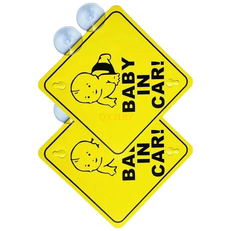 2 pegatinas de advertencia para bebé con doble ventosa para coche.