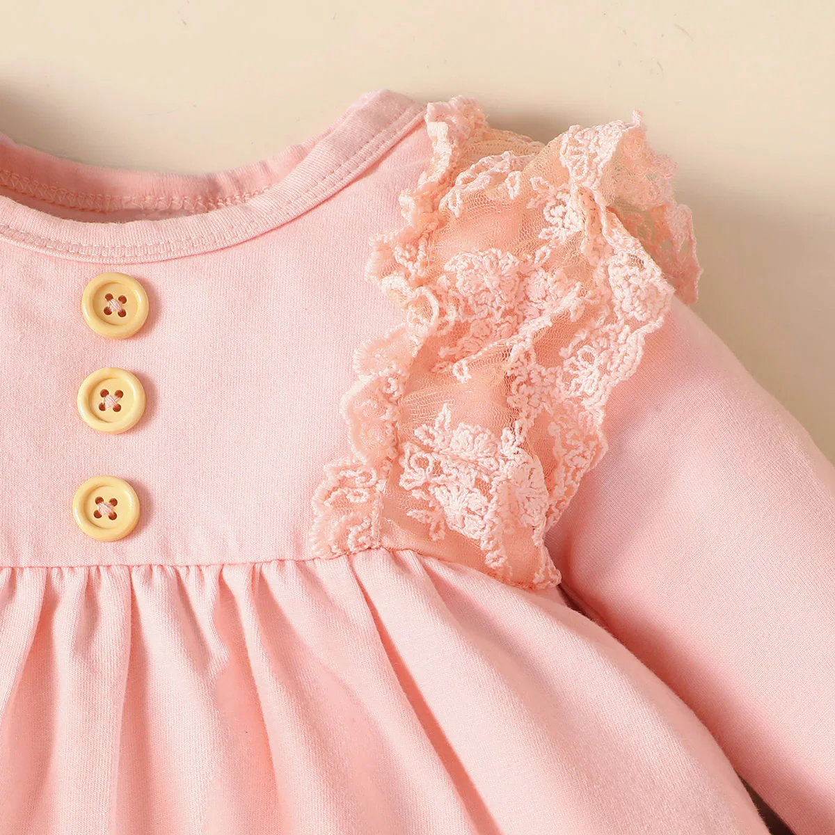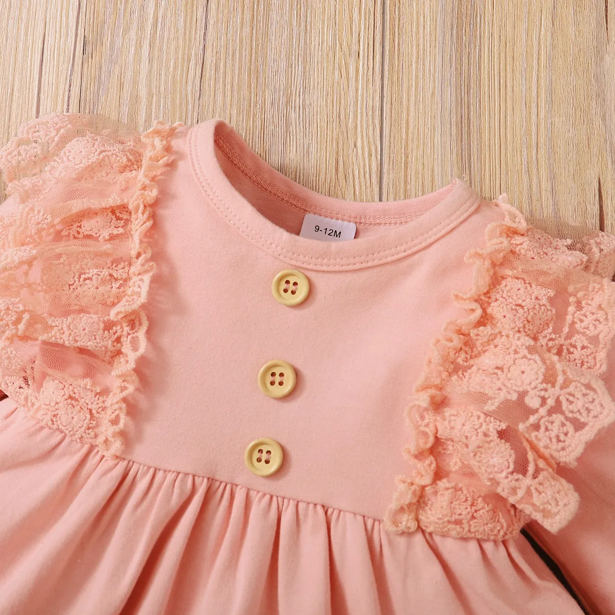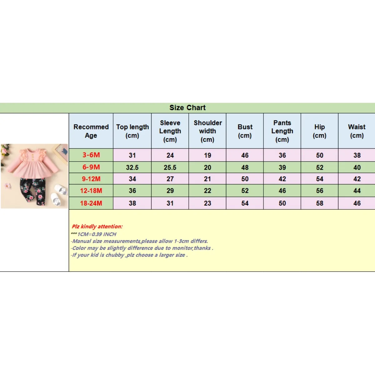 Comprar Conjunto de ropa de 2 piezas para niña pequeña, Top de encaje de manga larga y pantalones de flores, Moda de Primavera y otoño, Atuendo para niña pequeña de 3 a 24 meses
