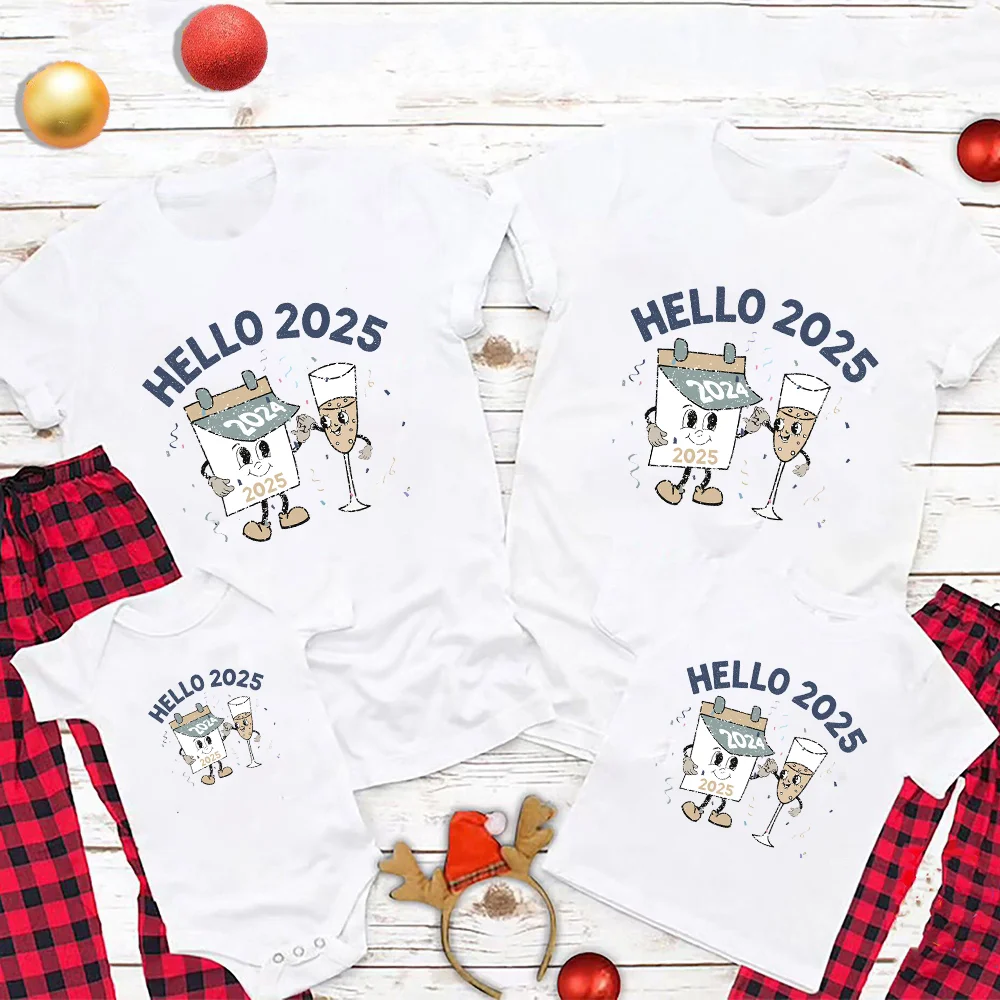 Comprar Conjunto de ropa a juego con estampado de Hello 2025 para la familia, camisa de mamá, papá, hija e hijo, fiesta de año nuevo, 2024