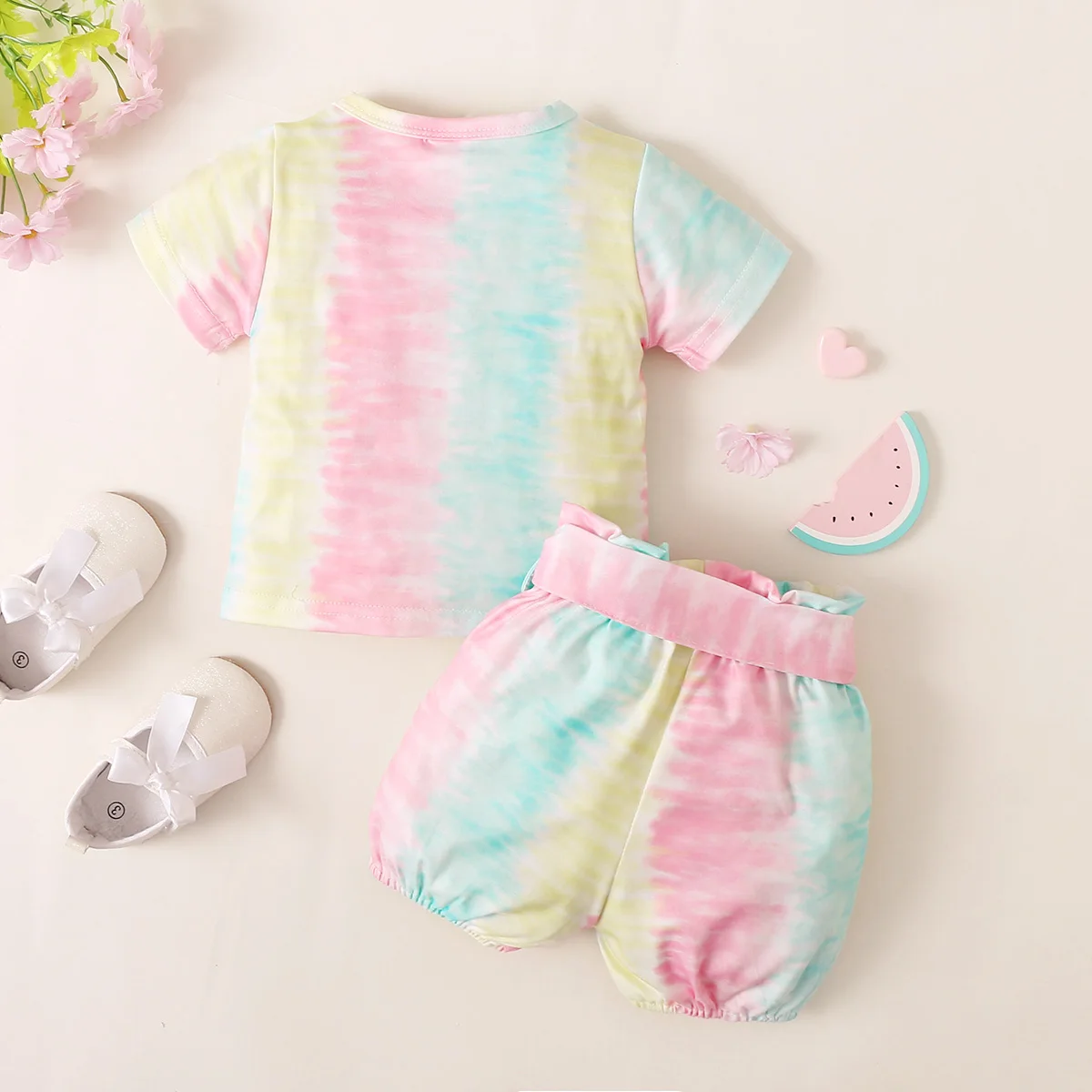 Conjunto de ropa para bebé de 3 a 24 meses, camiseta y pantalones cortos con teñido anudado, ropa de 2 piezas para niña pequeña, traje de verano