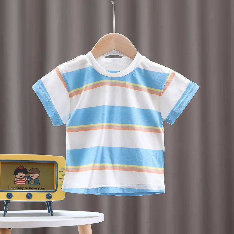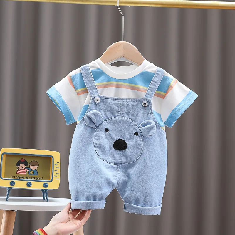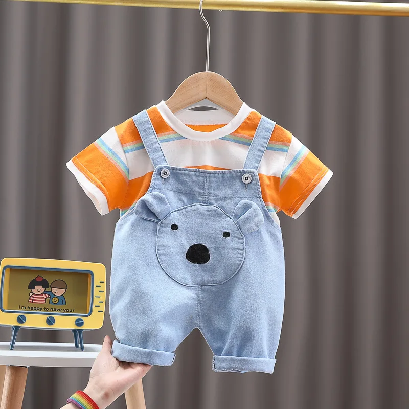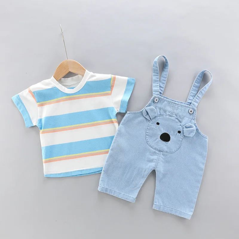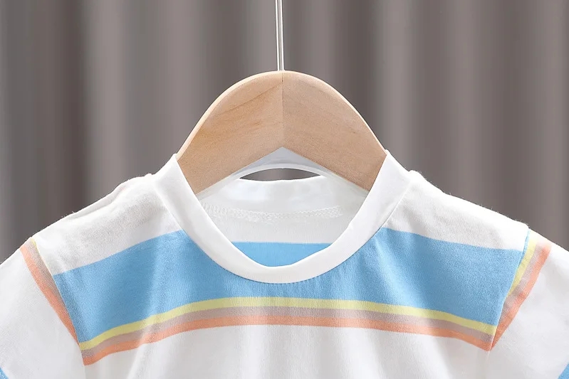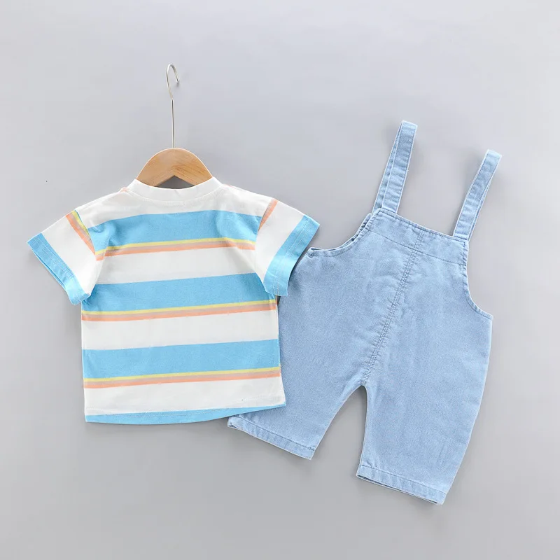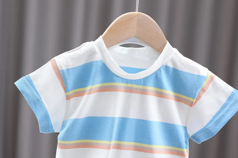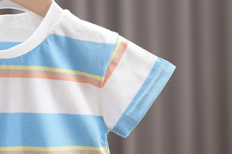 Nueva ropa de verano para niña, traje para niños, camiseta a rayas, pantalones cortos, 2 unids/set, ropa para niños pequeños, disfraz infantil, chándales para niños de 0 a 4 años