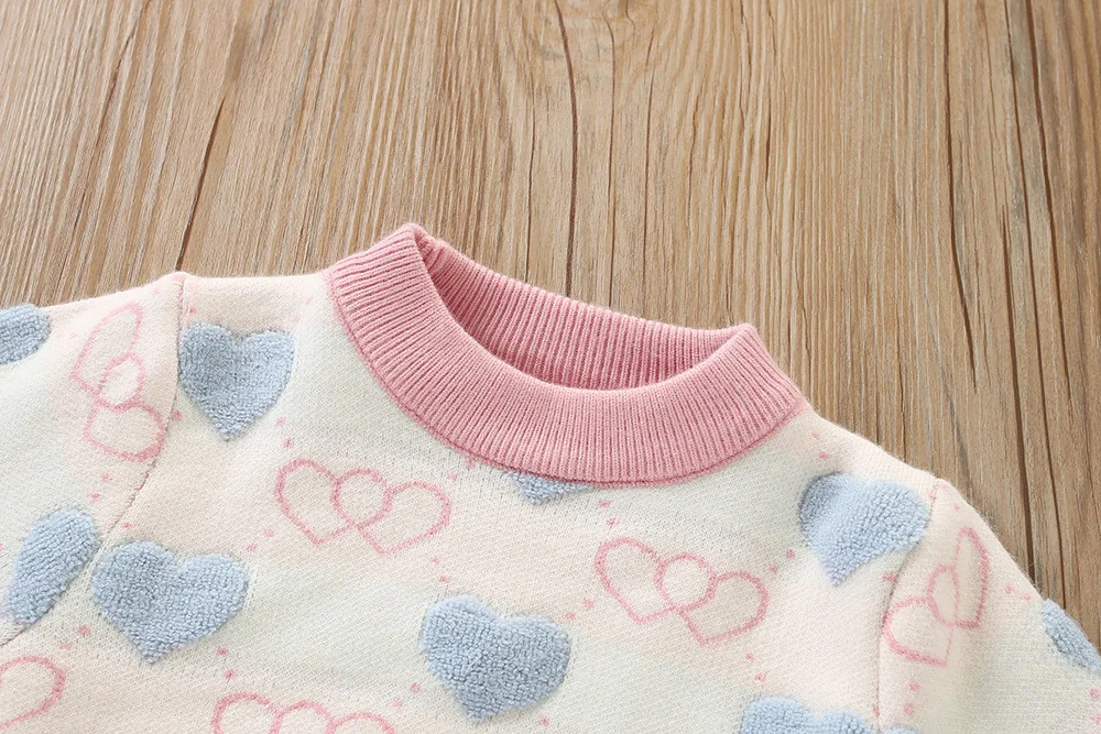 Conjunto de ropa para bebés de otoño/invierno, suéter y falda de punto con corazón para niñas de 1 a 5 años, 2 uds., conjunto de moda para niñas, jersey para niños - imagen 5