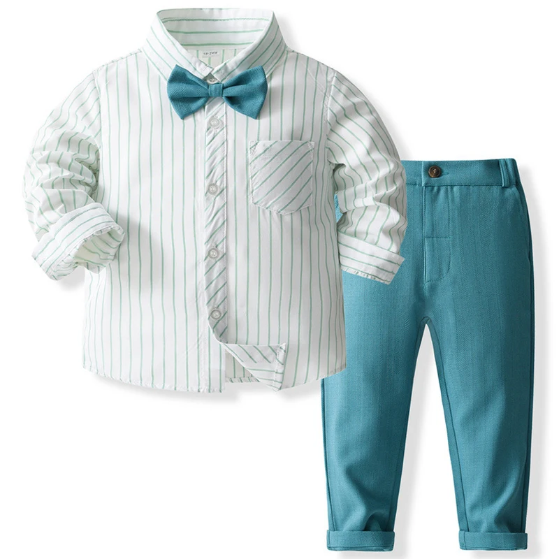 Comprar Conjunto de ropa de Boutique para niños, Tops y pantalones de algodón de manga larga a rayas de caballero, Moda de Primavera y otoño, BC734