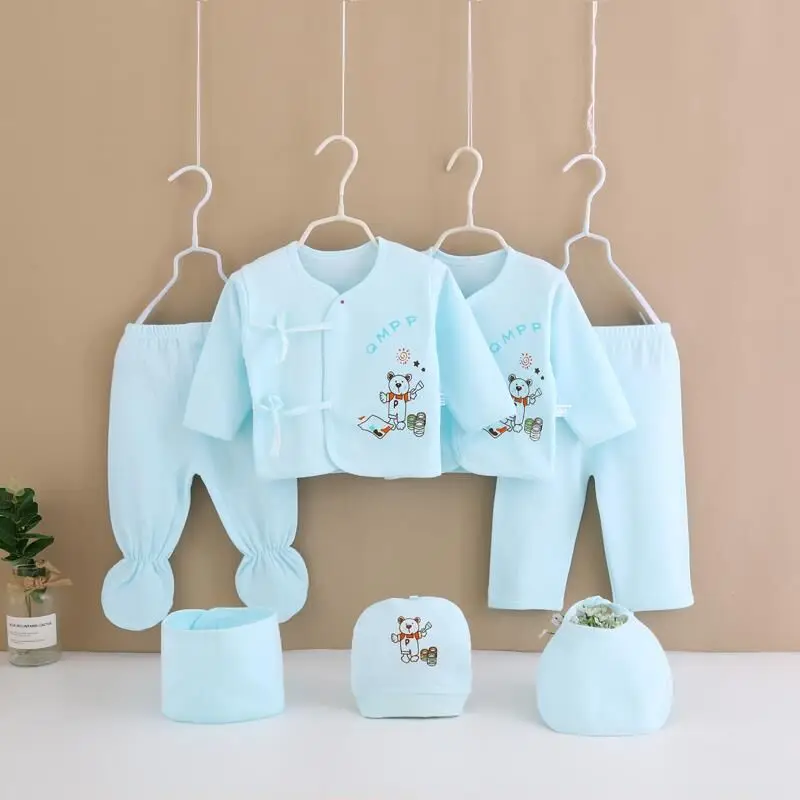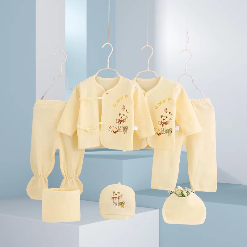 Comprar Conjunto de ropa de dibujos animados para recién nacidos, camisa, pantalones, baberos, sombrero para bebés, niñas y niños de 0 a 3 meses, niño recién nacido, paquete de 7 unidades