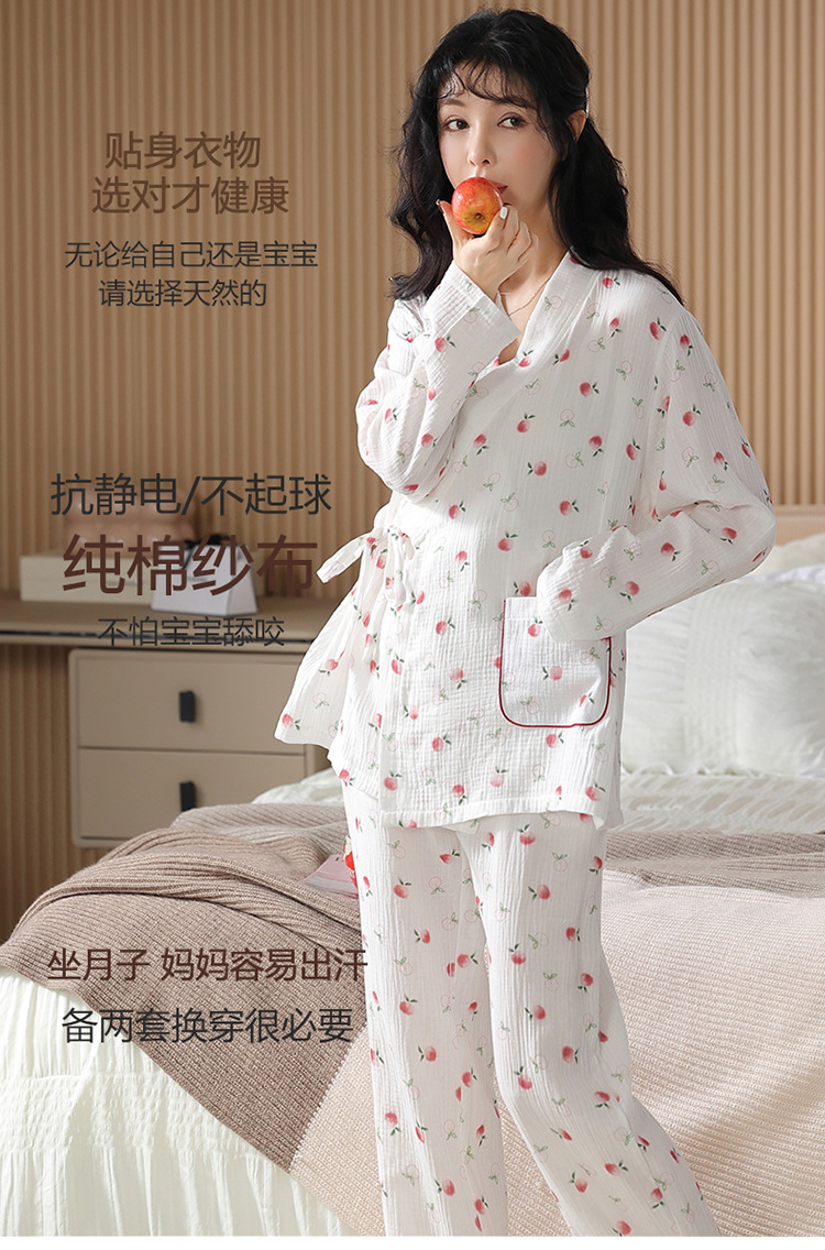 Primavera 100% algodón tela antiarrugas Pijamas de lactancia fina cómoda transpirable mujeres embarazadas ropa de dormir de lactancia