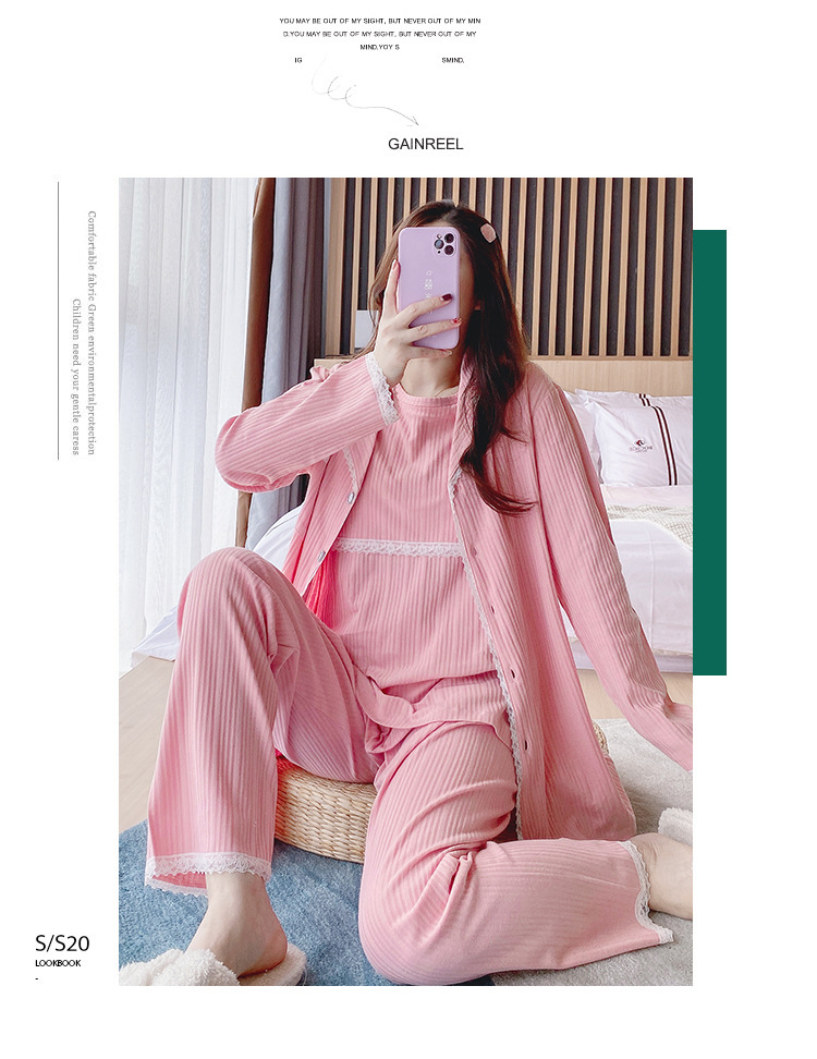 Ropa de maternidad de 3 piezas, ropa de dormir para lactancia, pijamas de lactancia para mujeres embarazadas, pijamas de algodón