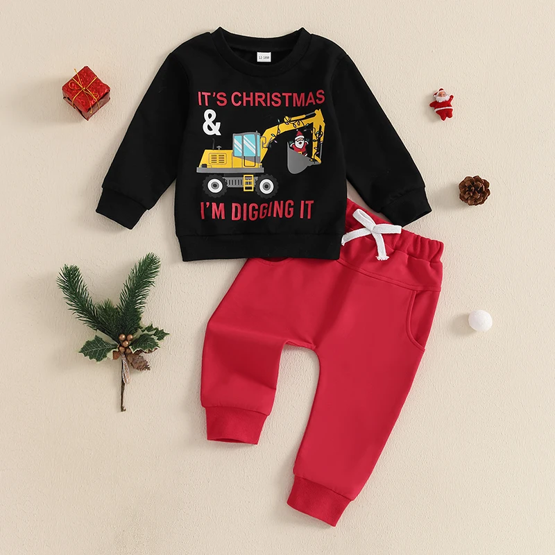 Conjuntos navideños para bebés, Sudadera de manga larga y pantalones con estampado de camión, conjunto de ropa de invierno para niños pequeños