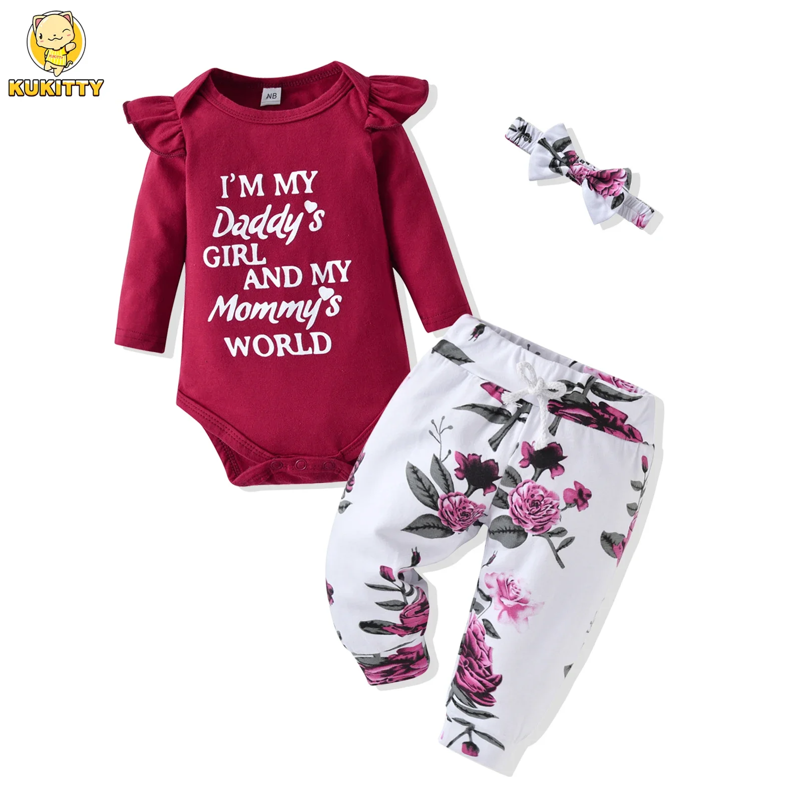 Conjunto de ropa de moda para niña recién nacida, Pelele de algodón de manga larga, Top, pantalones infantiles con diadema, traje para niña, primavera y otoño