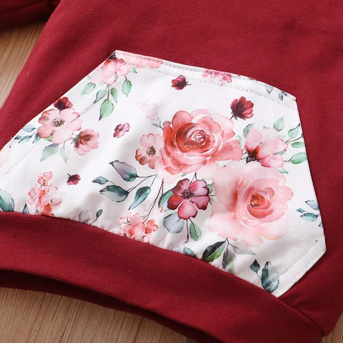 Conjunto de ropa para niña de 3 uds., Top con capucha de manga larga con estampado de flores, pantalones y diadema, ropa de otoño e invierno de 3 colores para bebé de 0 a 2 años