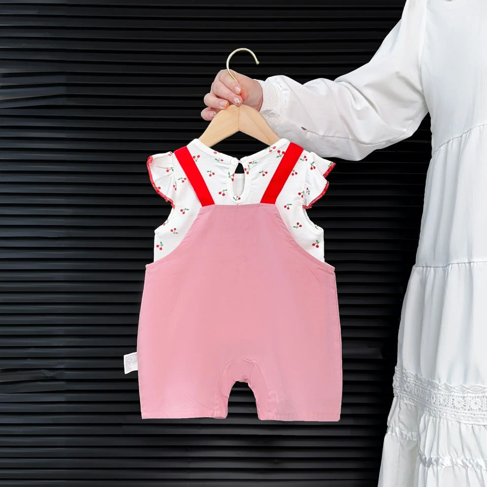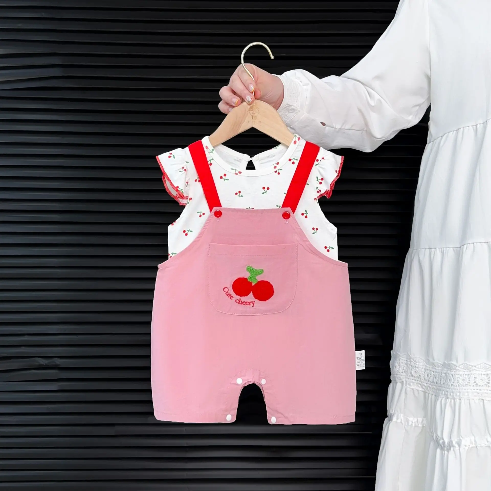 Conjunto de ropa para niñas de 9m -3T, camiseta de cereza con manga acampanada y monos bordados, traje para niñas de 2 uds.