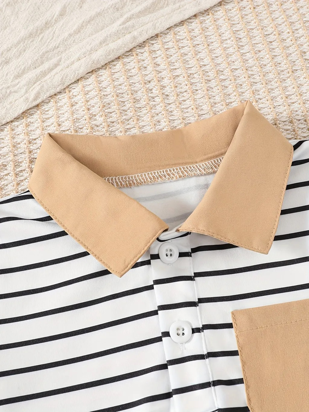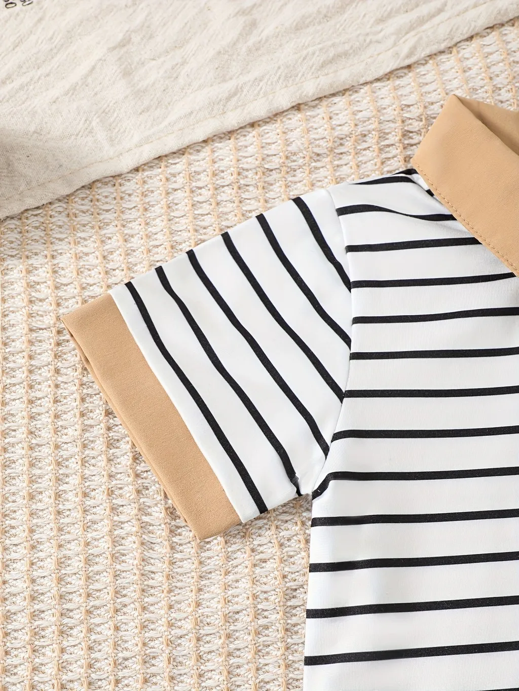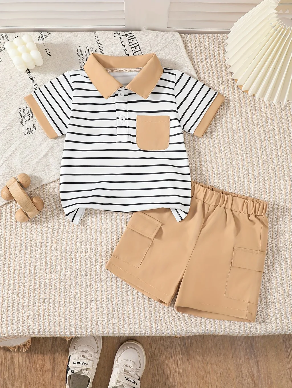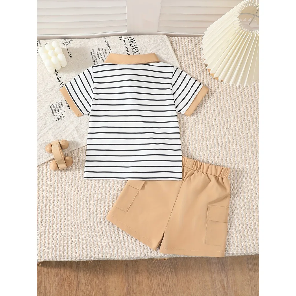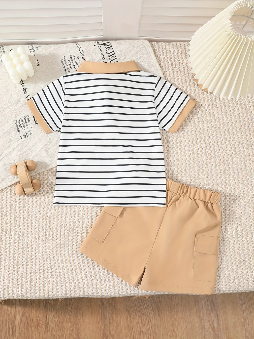 Conjunto de ropa para niño pequeño, Top a rayas de manga corta + Pantalones cortos de trabajo, trajes informales de estilo coreano para niño de 0 a 3 años, 2 uds.