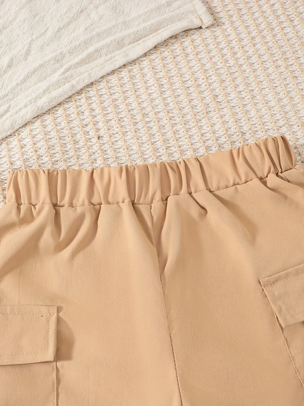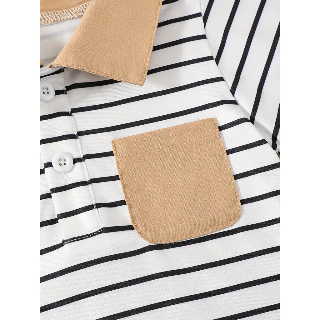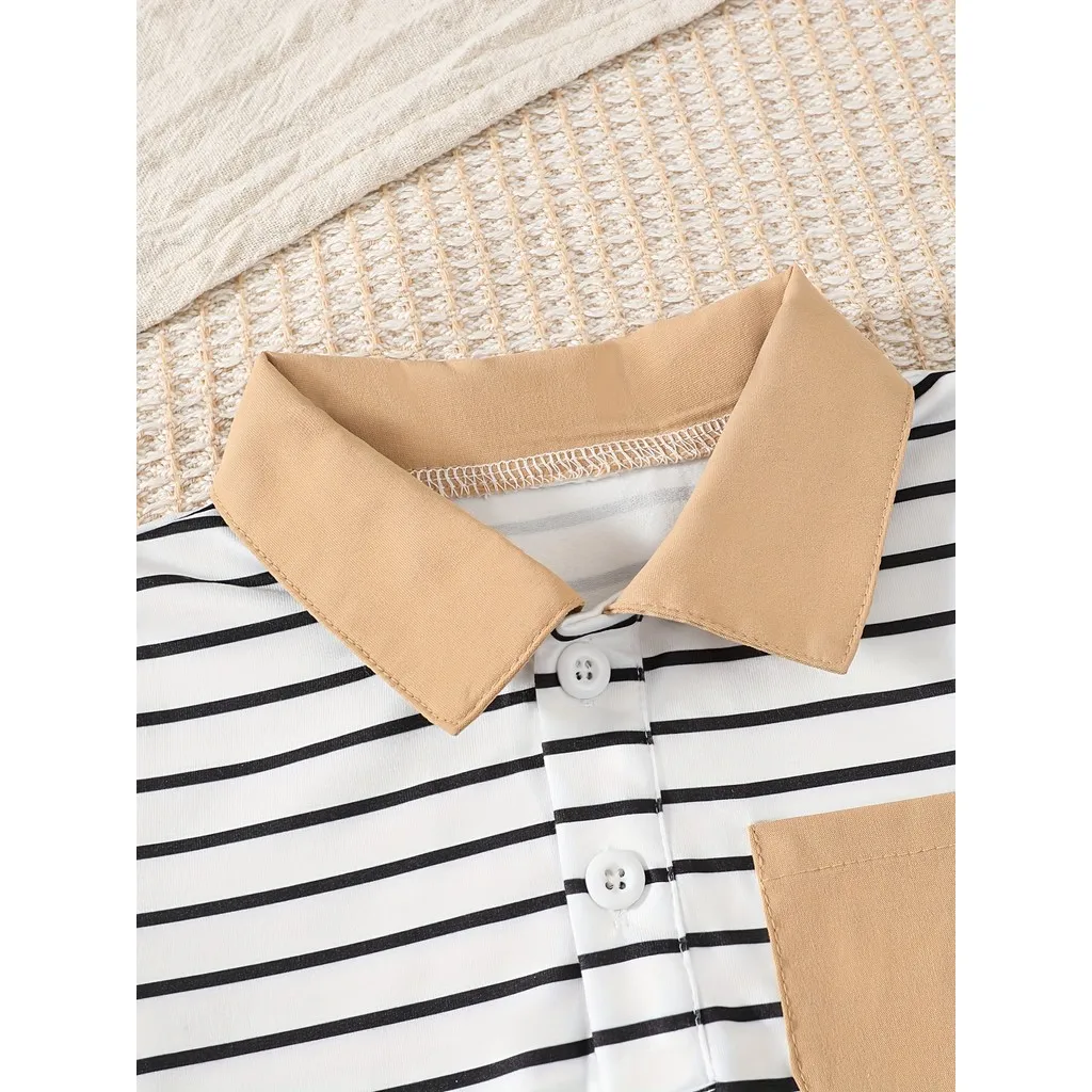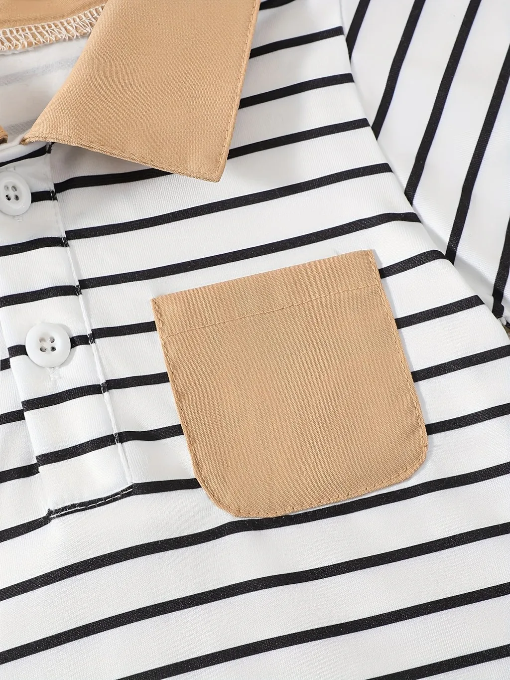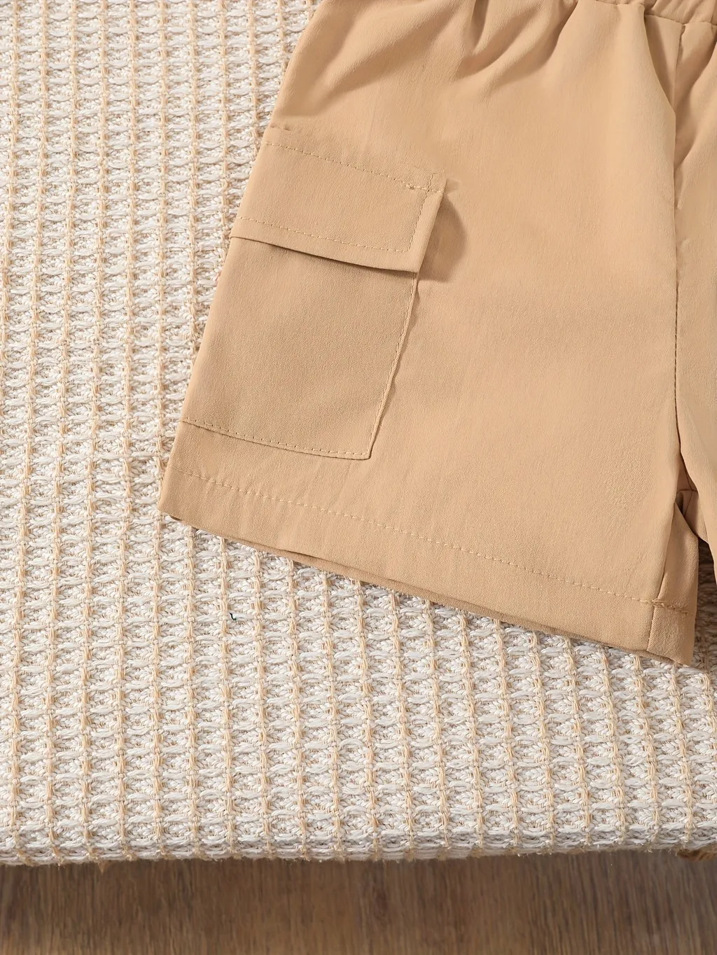Conjunto de ropa para niño pequeño, Top a rayas de manga corta + Pantalones cortos de trabajo, trajes informales de estilo coreano para niño de 0 a 3 años, 2 uds.