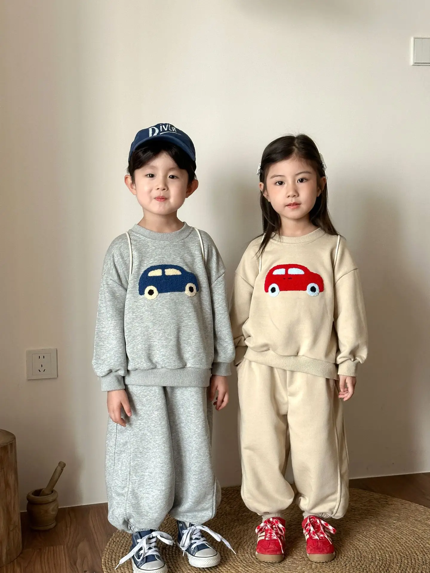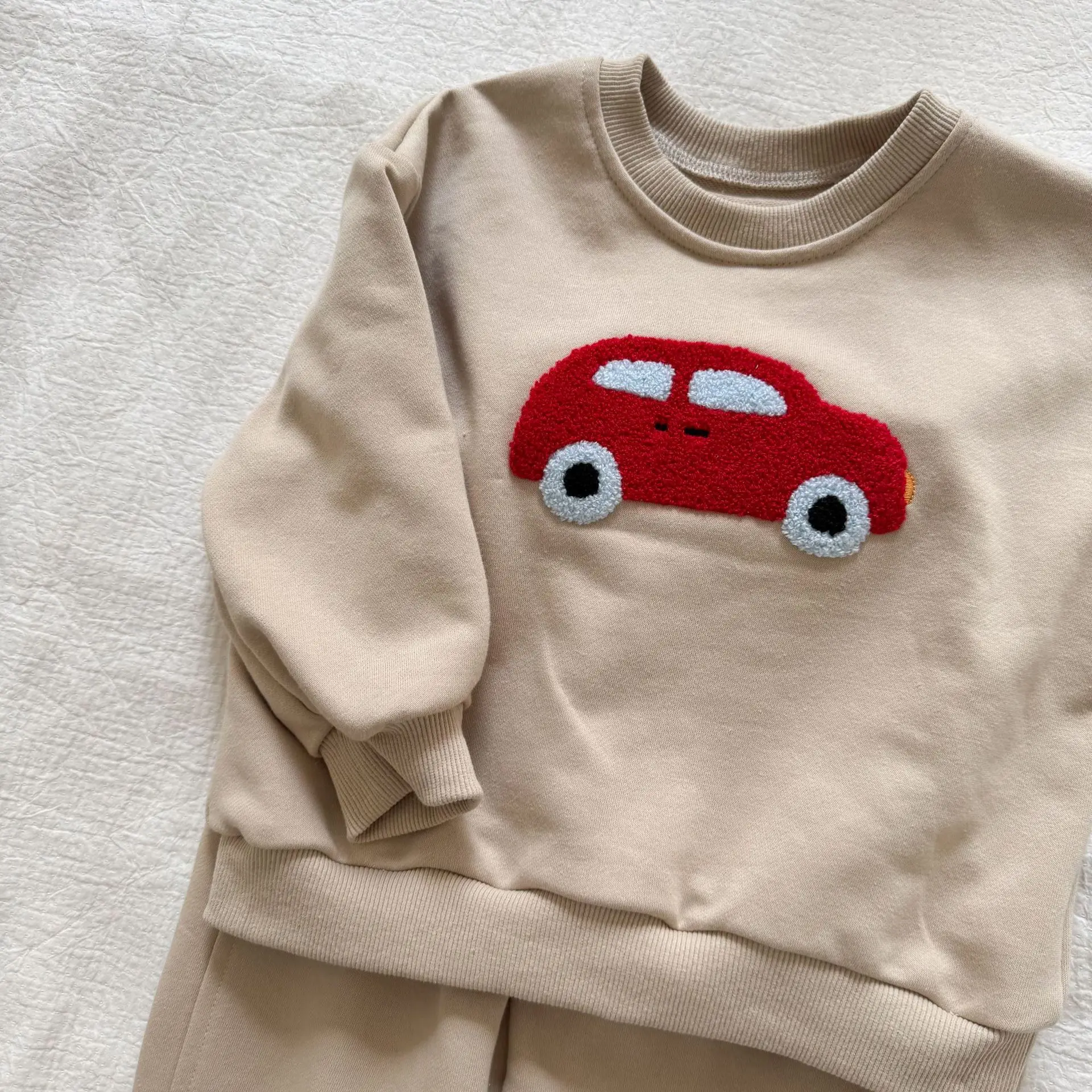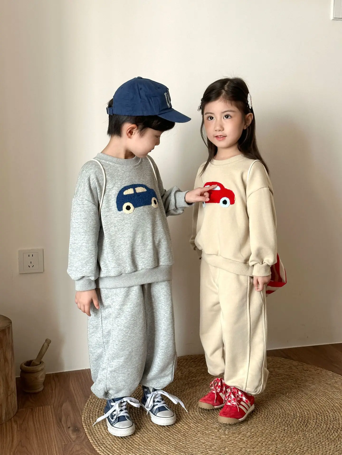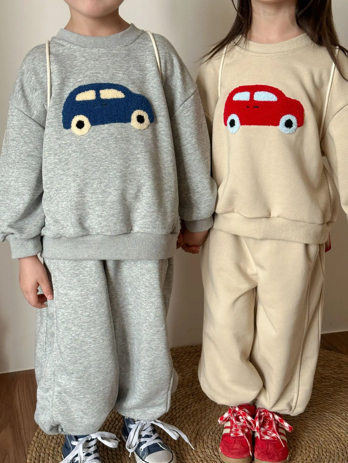 Conjunto de ropa para niños de 2 a 8 años, Sudadera con capucha de coche de dibujos animados y pantalones largos, traje con capucha de 2 uds, traje deportivo informal, prendas de vestir exteriores para niñas
