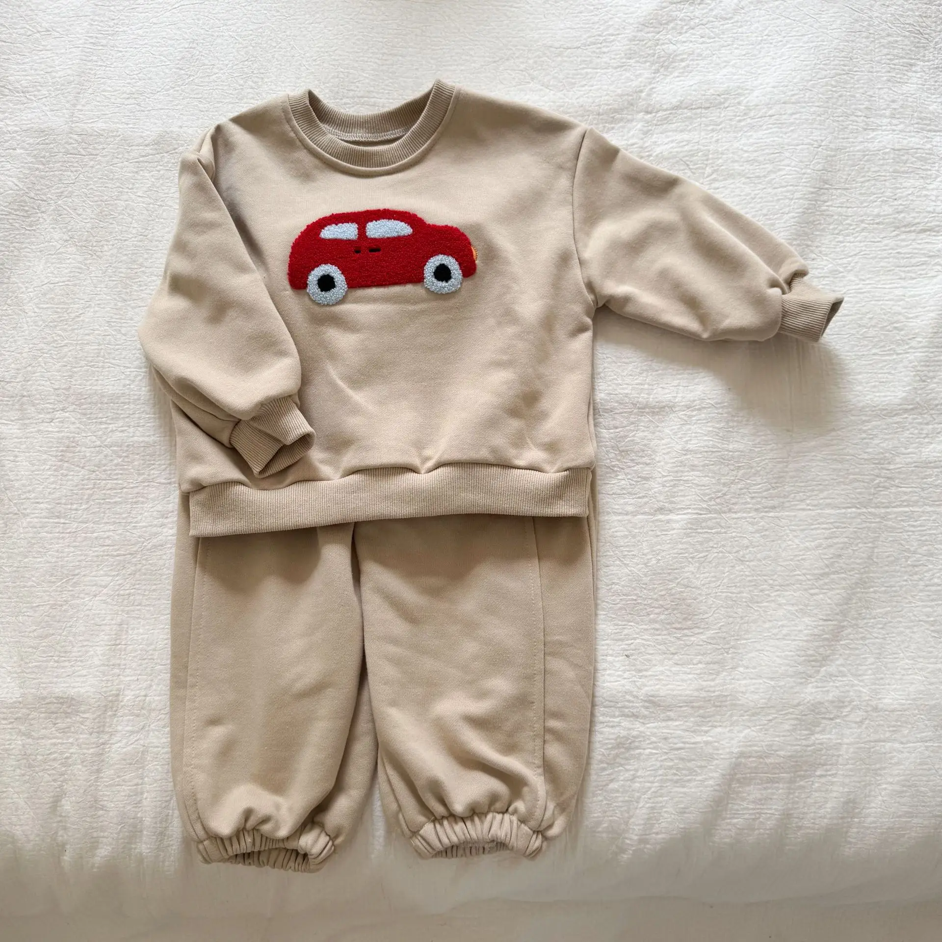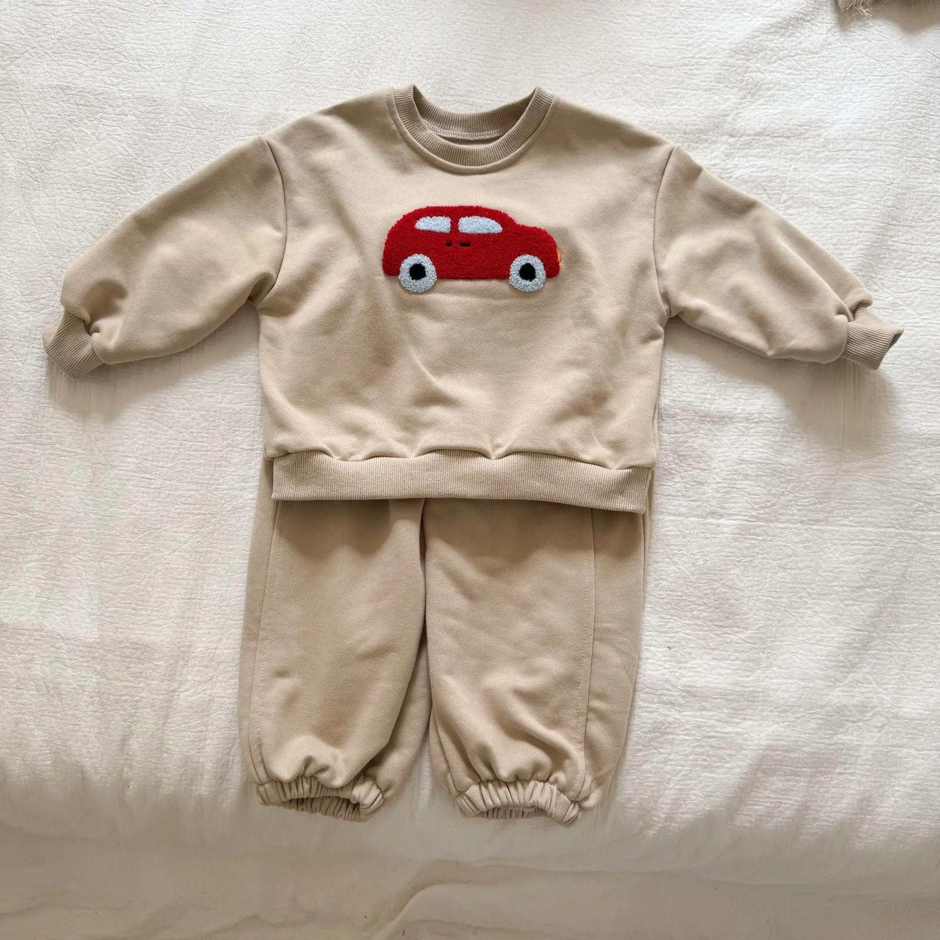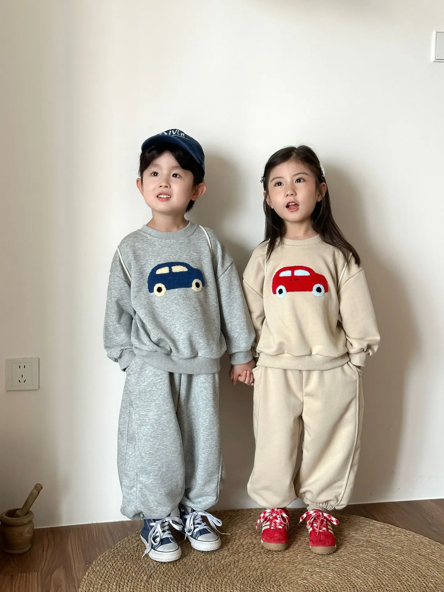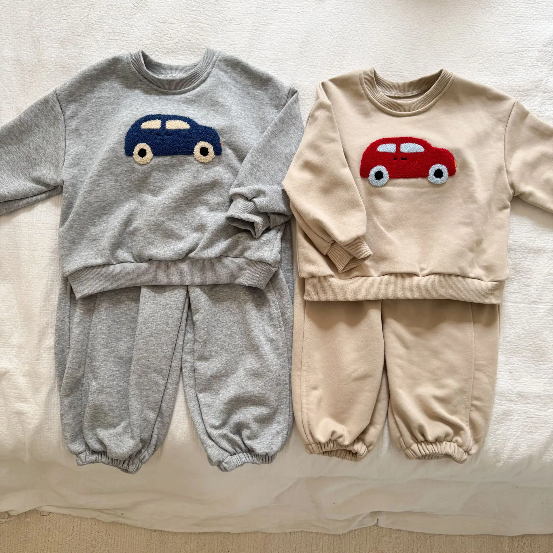Conjunto de ropa para niños de 2 a 8 años, Sudadera con capucha de coche de dibujos animados y pantalones largos, traje con capucha de 2 uds, traje deportivo informal, prendas de vestir exteriores para niñas