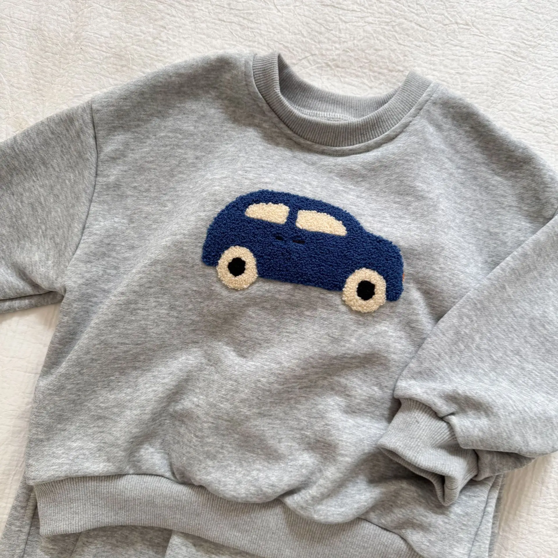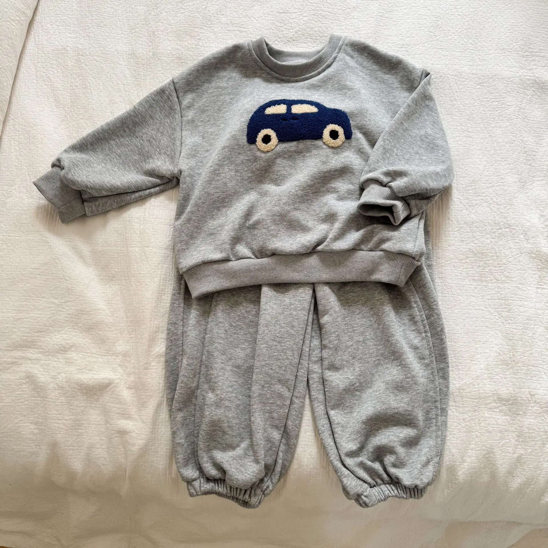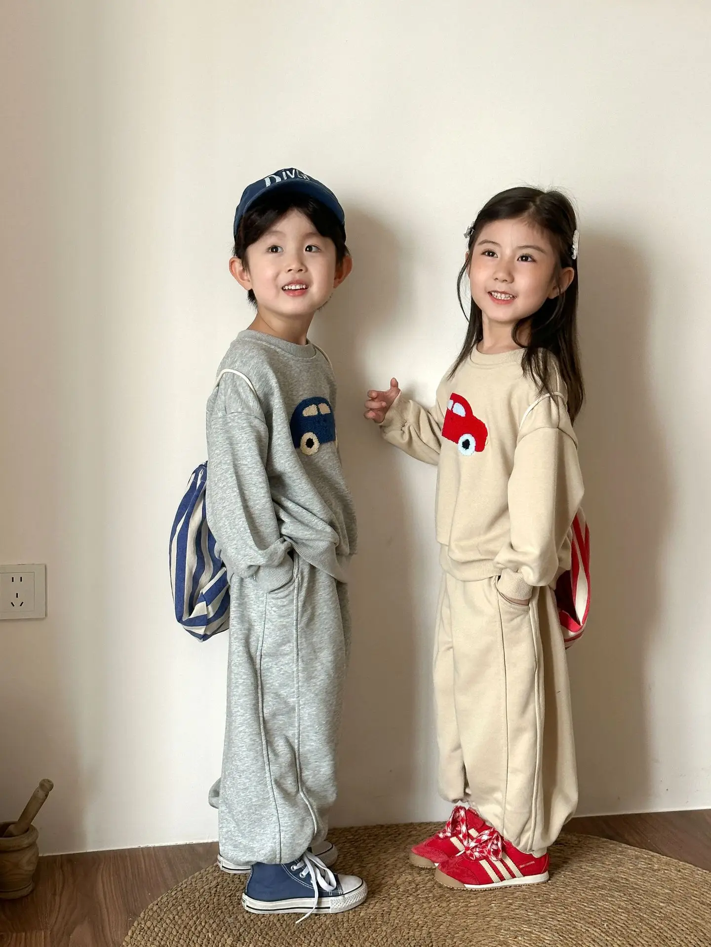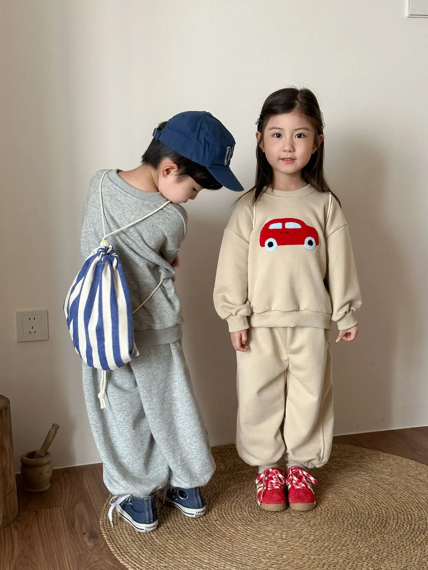 Conjunto de ropa para niños de 2 a 8 años, Sudadera con capucha de coche de dibujos animados y pantalones largos, traje con capucha de 2 uds, traje deportivo informal, prendas de vestir exteriores para niñas