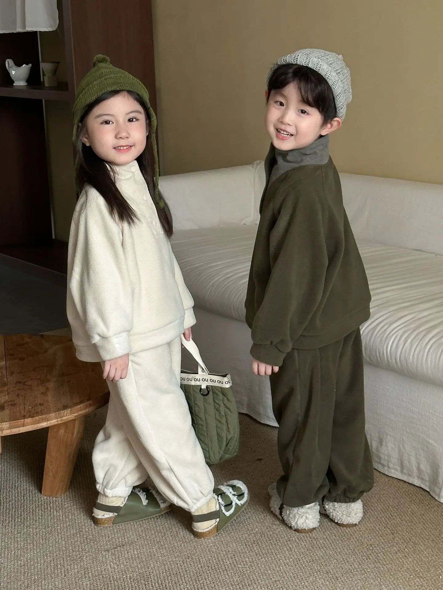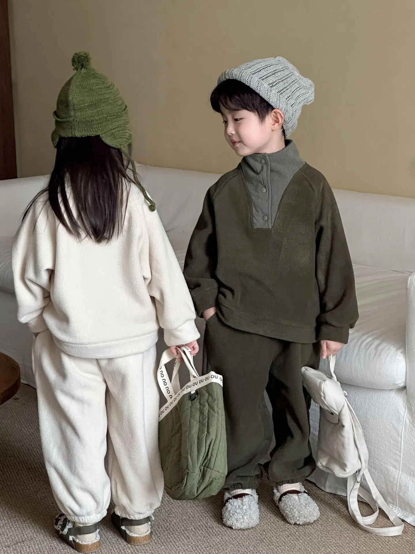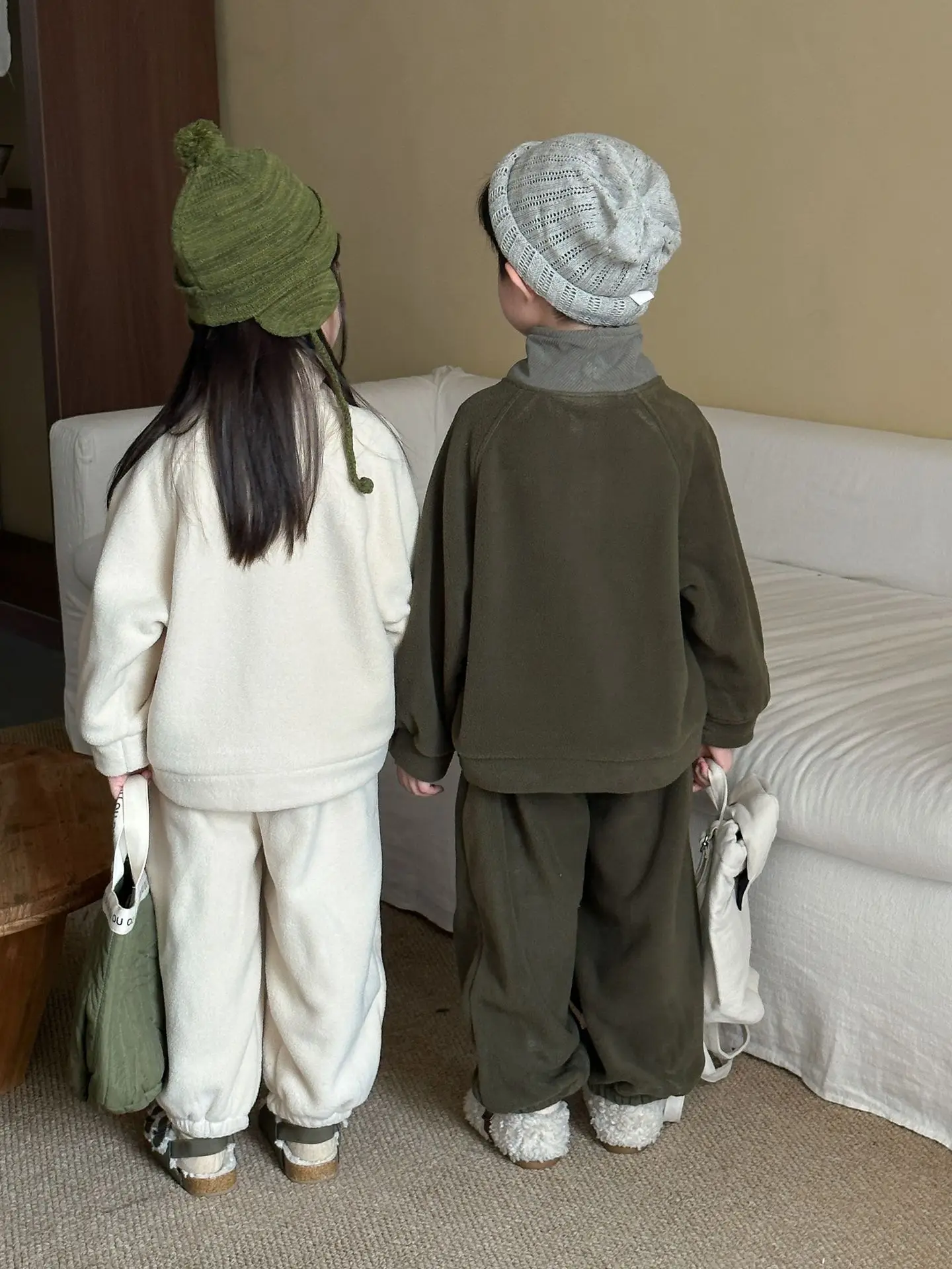 1. Tela de primera calidad: hecho de material polar forrado de lana, el conjunto es súper cálido, acogedor y agradable para la piel, brindando un toque suave a la piel de los niños.